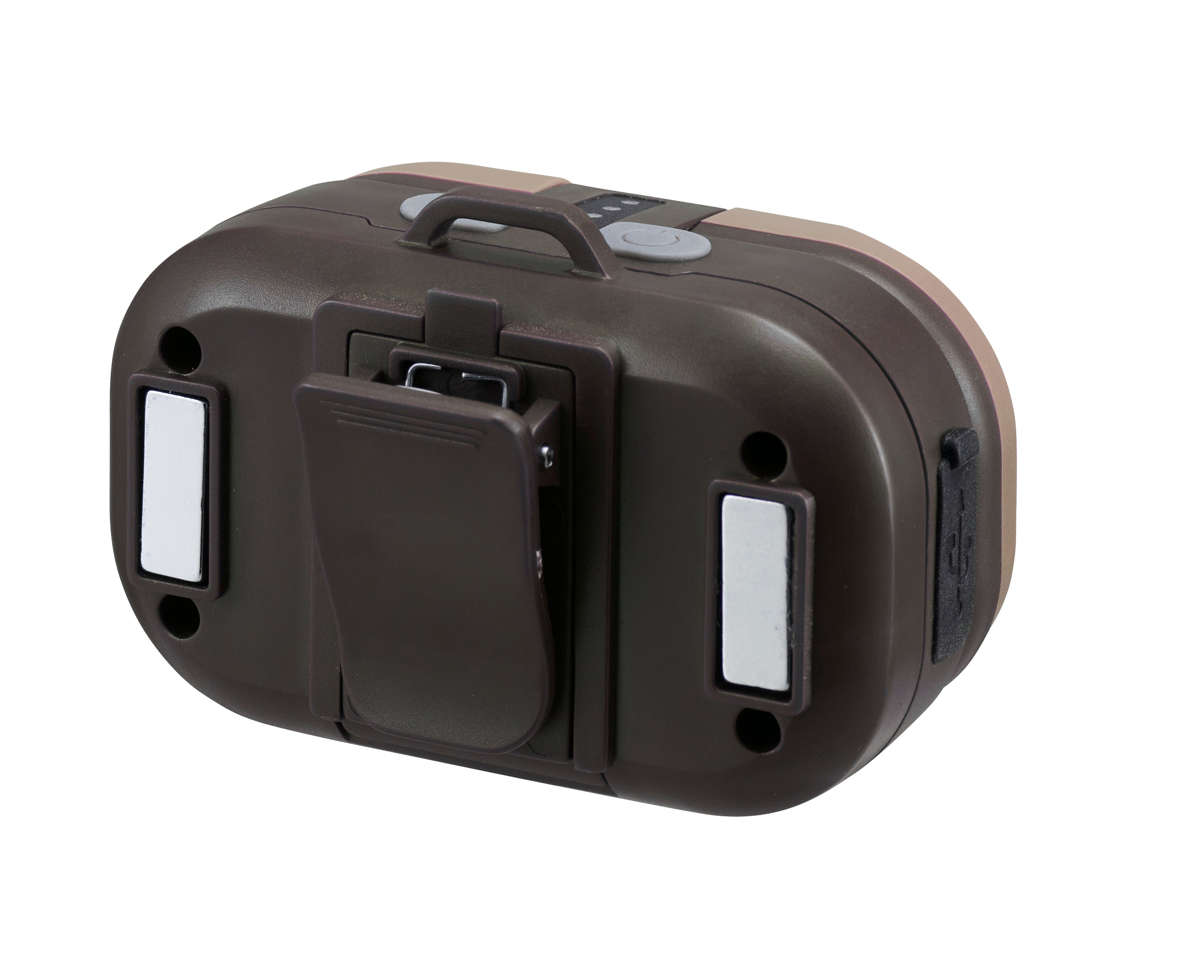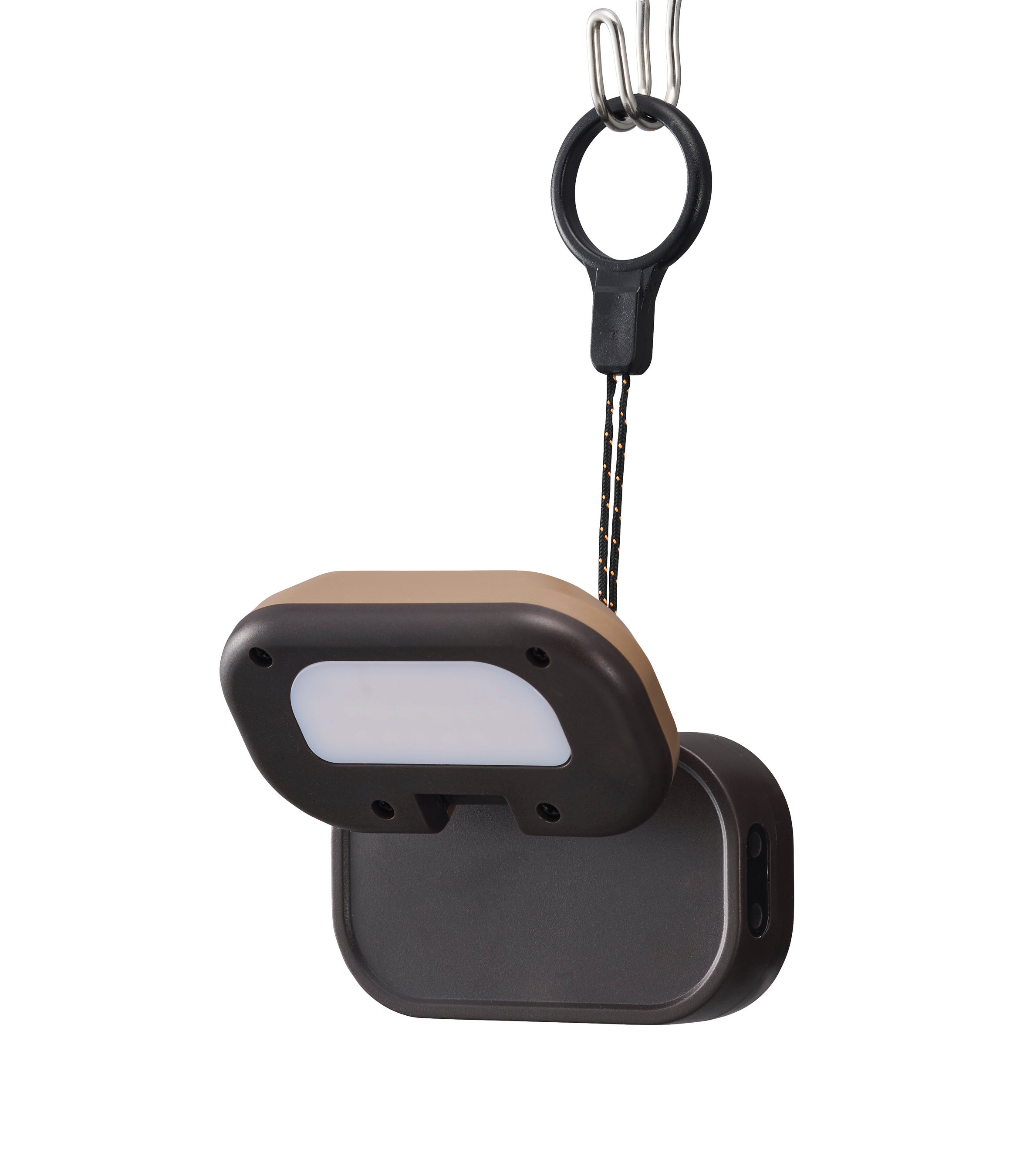 卓上ライトとしてはもちろん、本体にマグネットがついており、壁やテーブルなどに貼り付けて手元を照らしたり、リング部分をフックにかけてテント内の照明として使用することも可能です。さらに、「コンパクトパネルライト」同様、充電式(TYPE-C)のため、電池を使わずに繰り返し使用することができます。