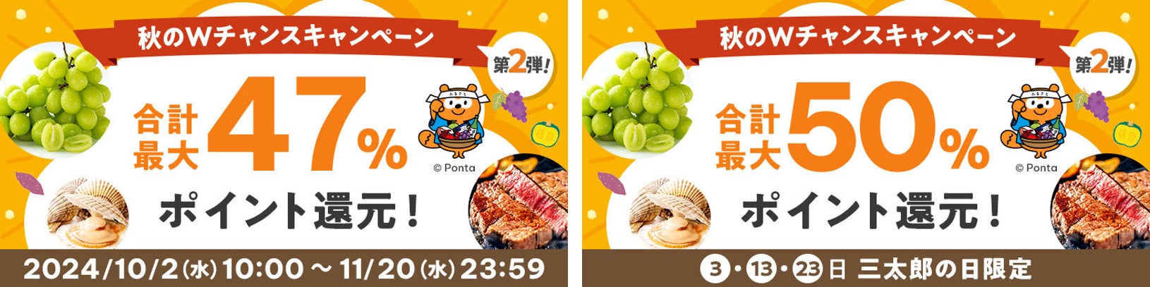 秋のWチャンスキャンペーン第2弾(https://furusato.wowma.jp/announce/campaign_241002/)
