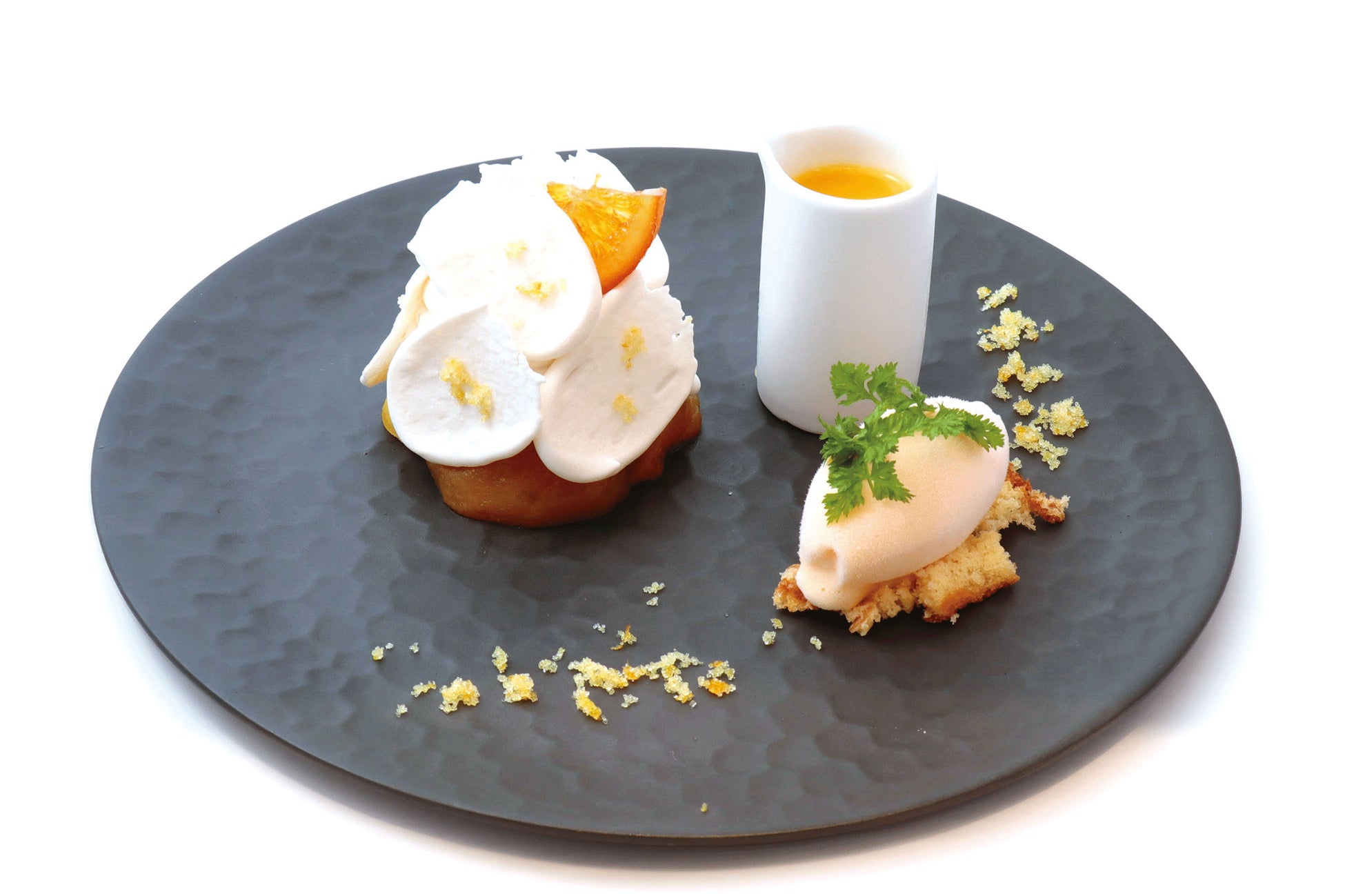 柿を主役にフランスの伝統菓子をアレンジした一皿