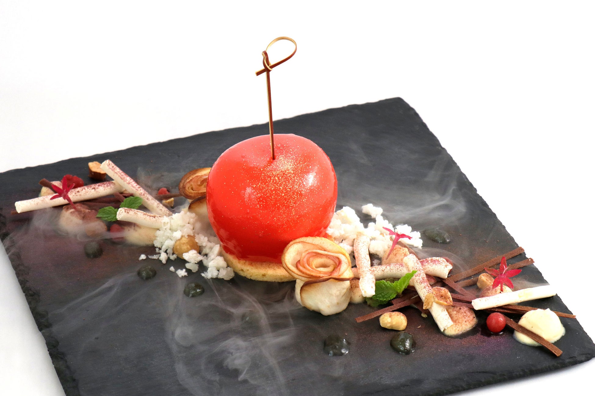 りんごの特徴である甘みと酸味が程よく絡み合う絶妙な味わいをデセールで表現しました。
