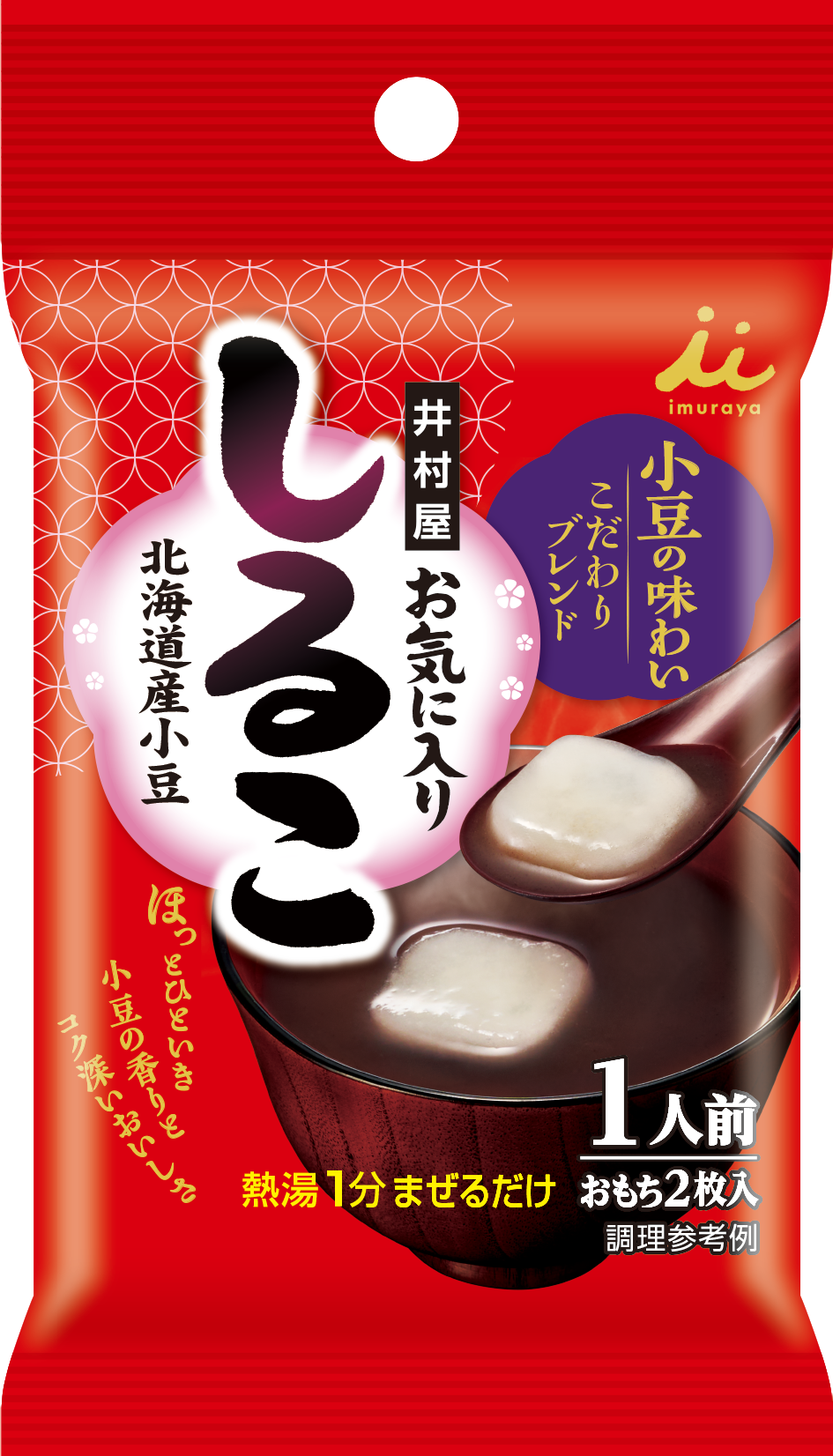 現在販売中の『お気に入りしるこ』は、個装された粉末状のおしるこが4袋入った集積タイプの商品です。北海道産小豆の豊かな風味と、熱湯を注ぐだけの手軽さで、多くのお客様にご愛顧いただいています。