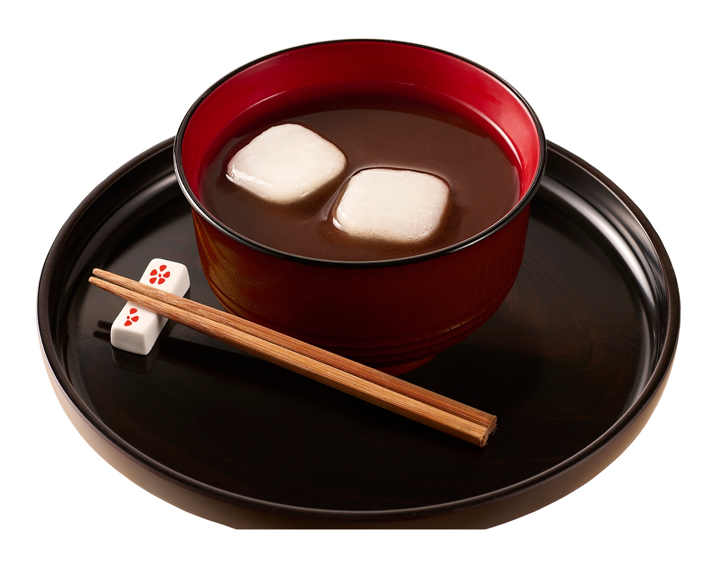 おしることしての風味や飲みごたえにこだわった結果、いずれも北海道産小豆を使用した粉末あんと2種類の粉末小豆をブレンド。さらに砂糖も2種類を組み合わせることで、小豆の風味とやさしい甘みがバランスよく楽しめる味わいに仕上げました。おもちも2枚入りで、小腹も満たせます。