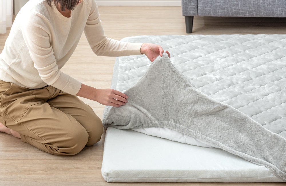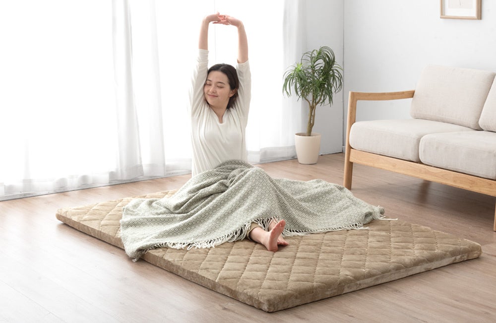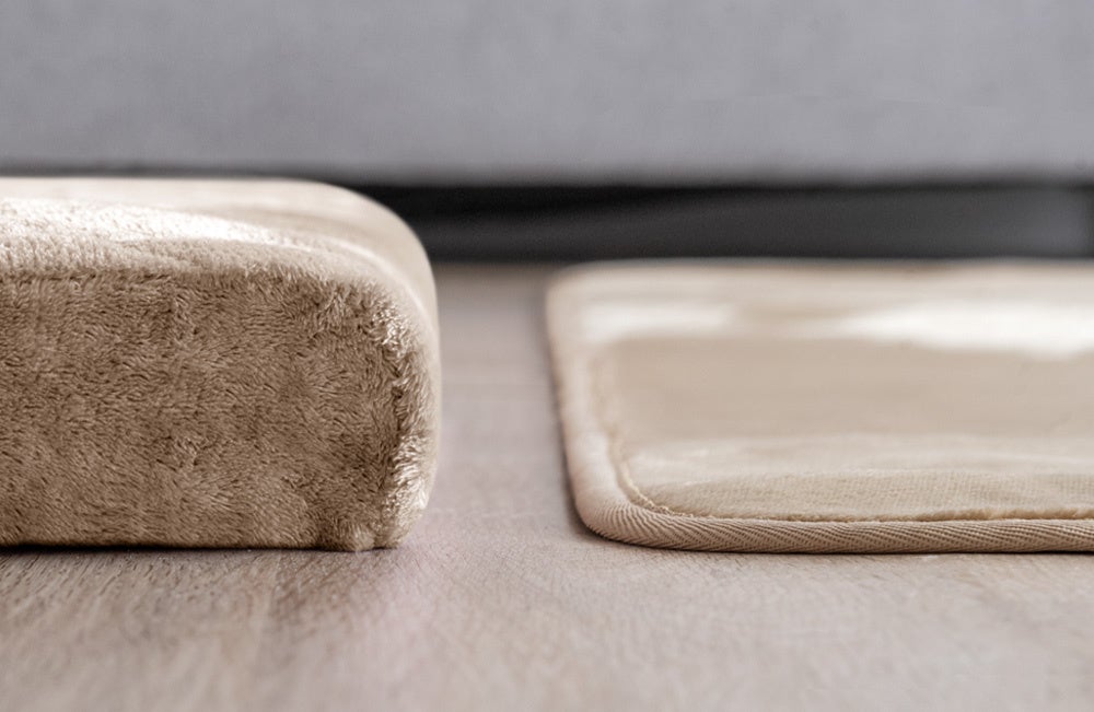 今回、極厚ラグにポケットコイルを内蔵することでより弾力のあるクッション性が加わり、底付き感のないふんわりとした座り心地をご体感いただけます。また、適度な反発力があるため、座ったり寝転んだりする際の動作もスムーズでお子様が元気に遊ぶスペースとしても安心してご使用いただけるほか、リビングや寝室など、ご家庭でのくつろぎ空間に最適です。