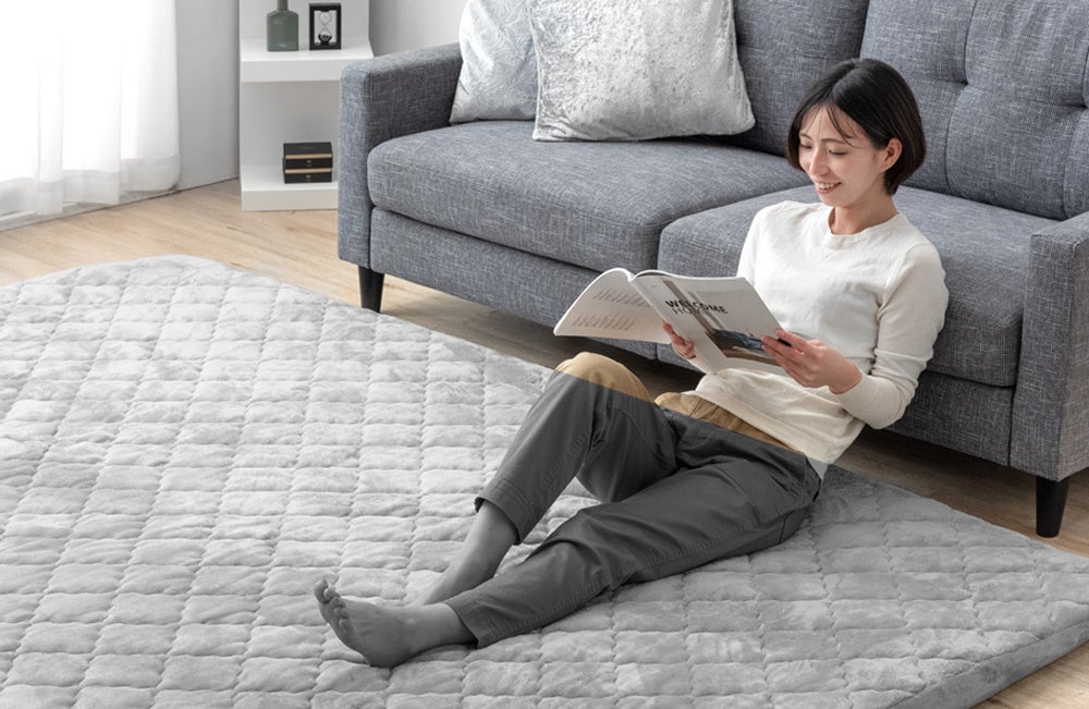 また、サイズ展開は約1.5畳〈130×185cm〉、約2畳〈185×185cm〉、約3畳〈185×240cm〉の3種類となっています。リビングや寝室、子供部屋など、さまざまな空間にフィットし、お部屋の広さに合わせた快適なレイアウトが可能で家族でくつろぐ場所としてはもちろん、ワンルームなど一人暮らしの方にもおすすめのサイズです。