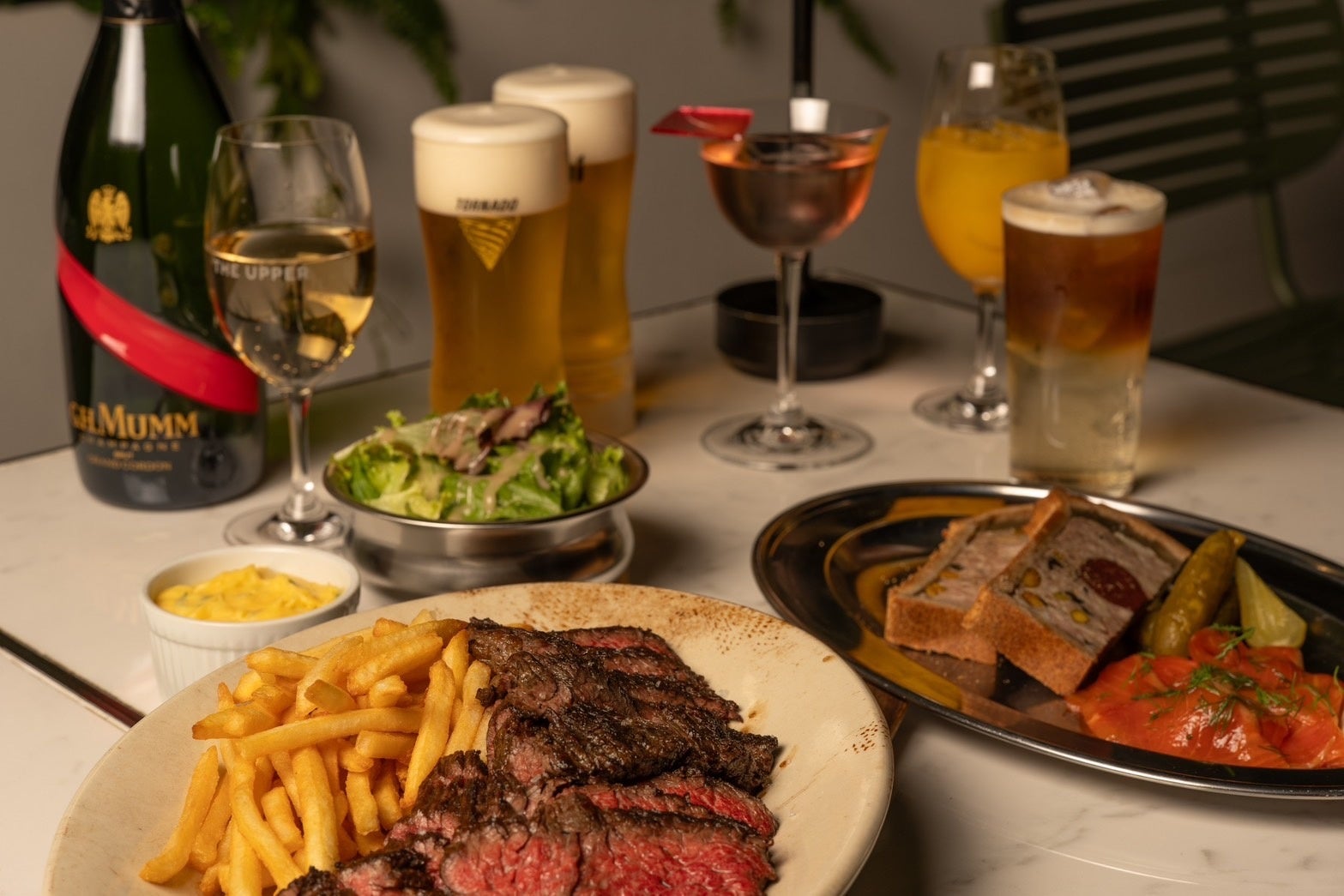 丸の内にある本場フランスの“ブラッスリーメニュー”を展開するレストラン〈THE UPPER〉でフリーフロー付「ビアテラスプラン」を発売。