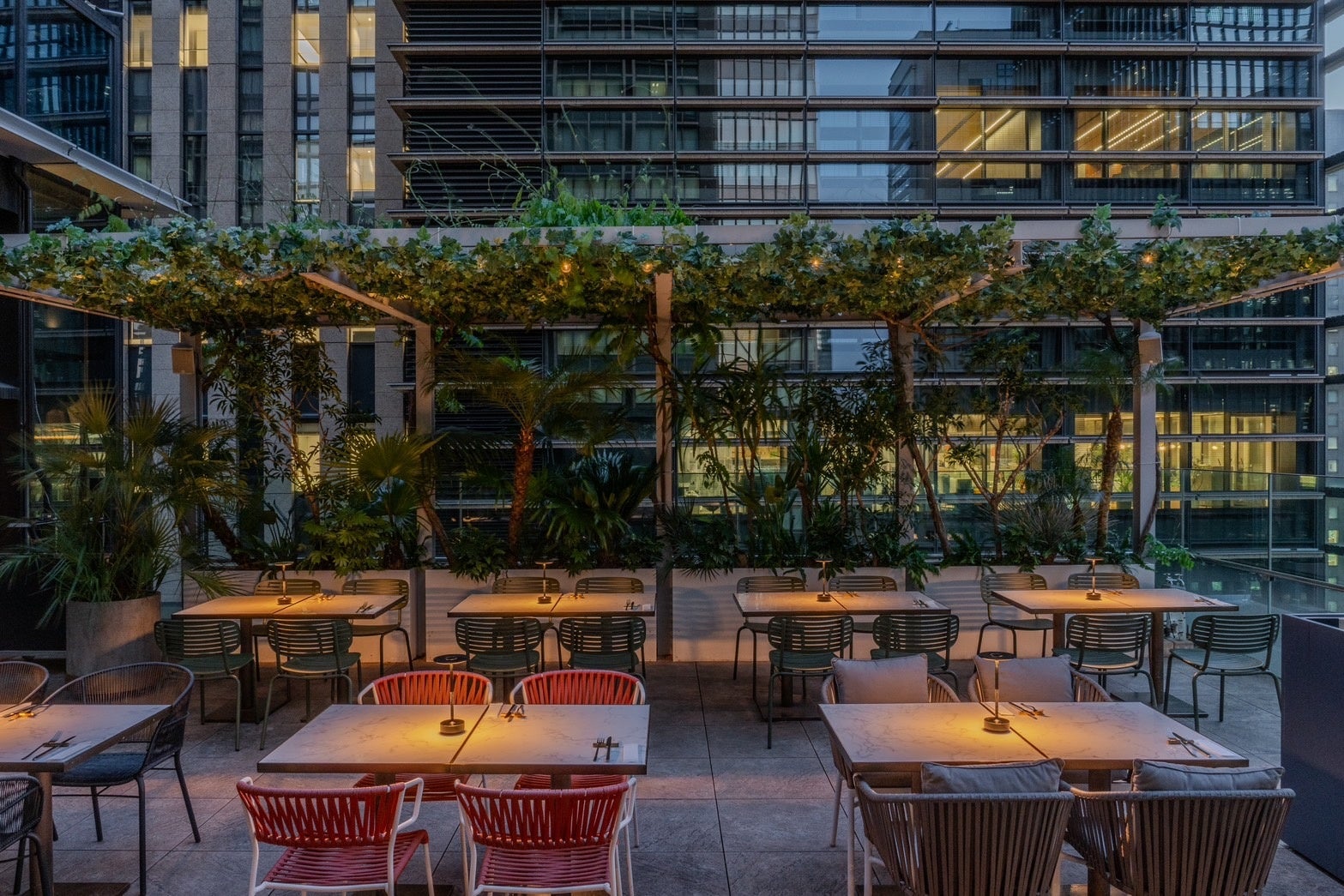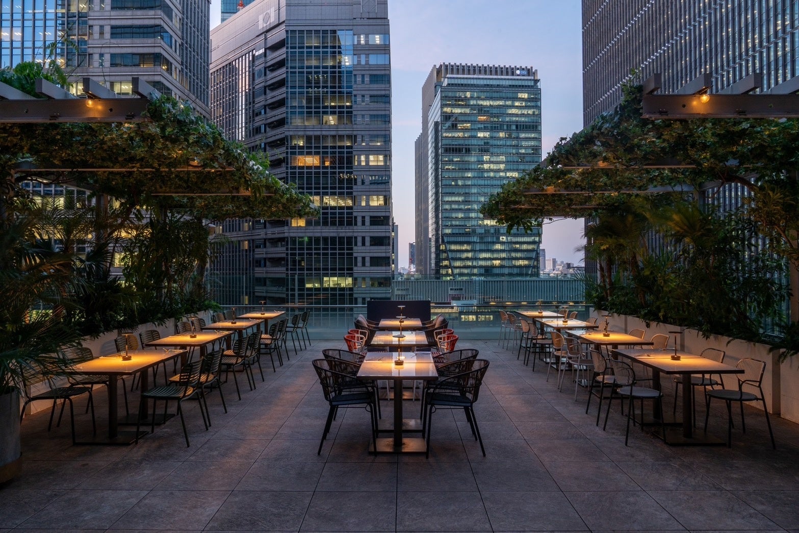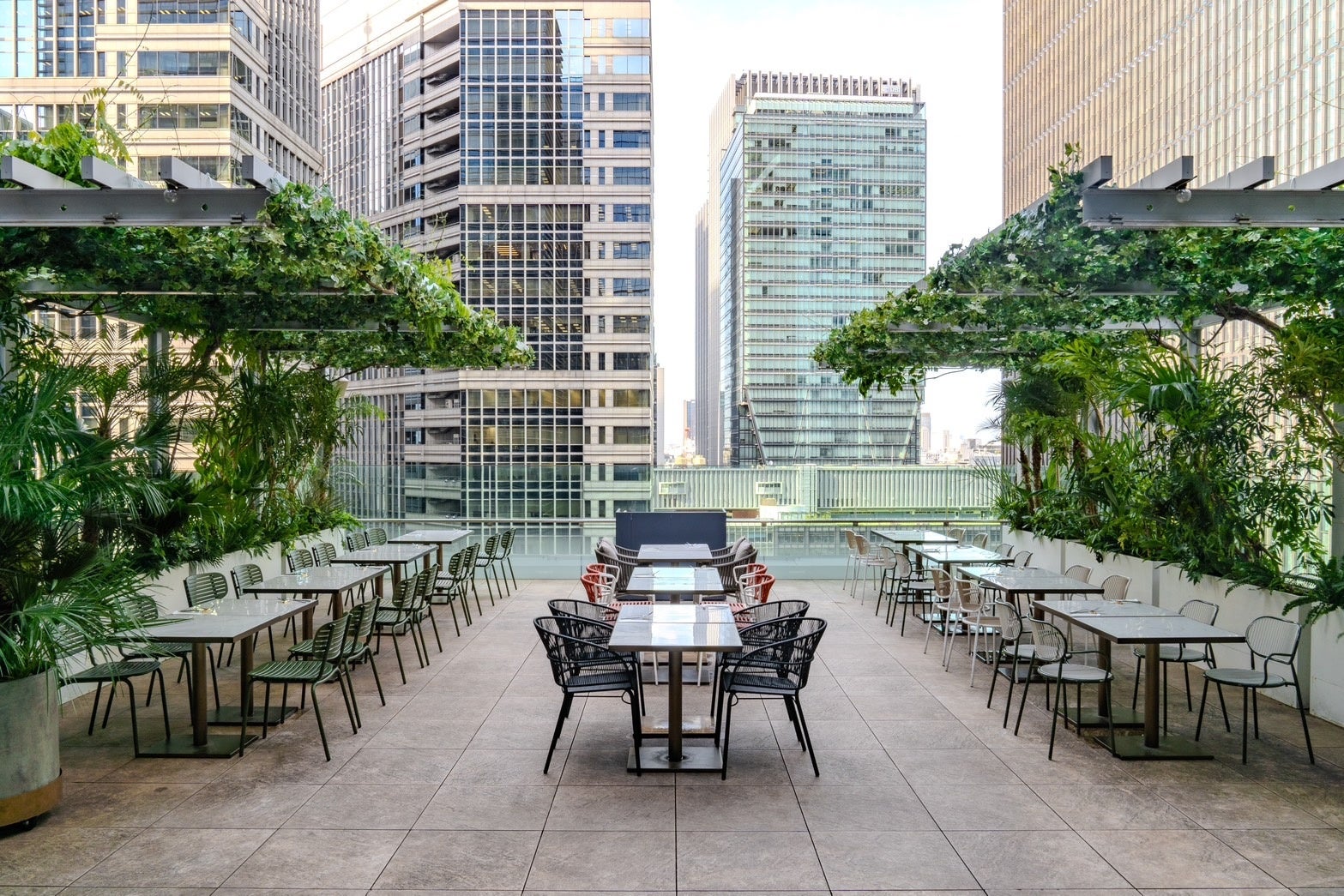 ビル群に囲まれたアーバンなルーフトップが、緑豊かでスタイリッシュな空間へとリニューアル、より快適にお過ごしいただけるようアップデートいたしました。