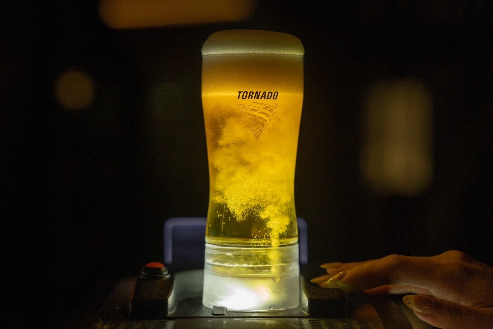 ビアテラスプランのメインとなるドラフトビールは、専用タップに乗せるとカップ底からトルネードのようにビールが沸き上がる不思議な感覚でお楽しみいただける生ビールを提供。