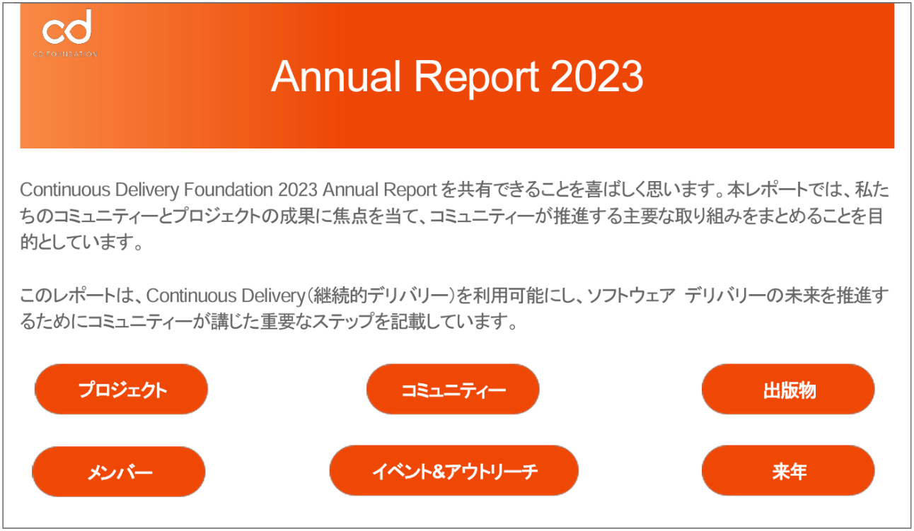 本日、Continuous Delivery Foundation 2023 Annual Report の日本語版が公開されました。