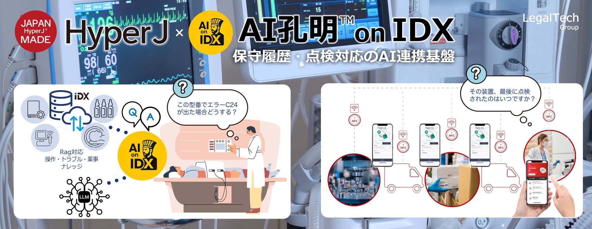 リーガルテックグループ JAPAN MADE社、HyperJ × AI孔明 on IDX、医療機器メーカーと医療機関に向けて「保守履歴・点検対応のAI連携基盤」を提供開始