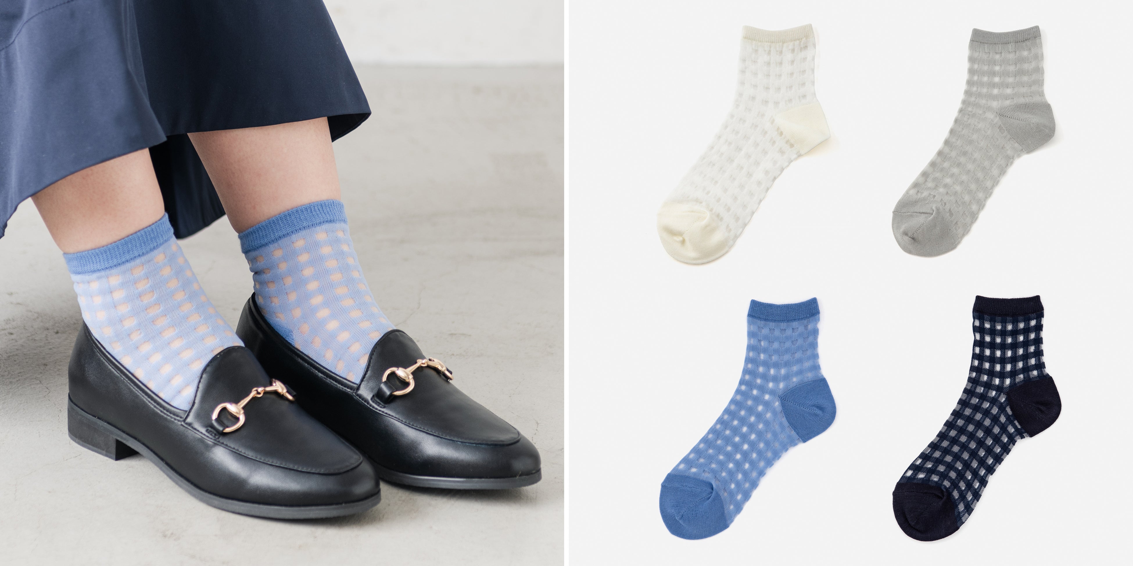 涼やかなギンガムチェック柄のシースルー靴下。透明感のある素材は、ファッションのさりげないアクセントにぴったりです。