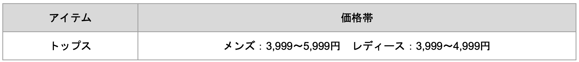 メンズ・レディース展開で、価格はメンズ/3,999〜5,999円・レディース/3,999〜4,999円(価格は全て税込み)と、お求めやすい価格となっております。