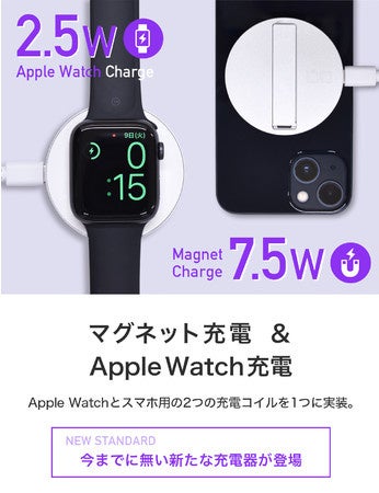 ワイヤレス充電とAppleWatchの充電が可能・マグネット吸着対応