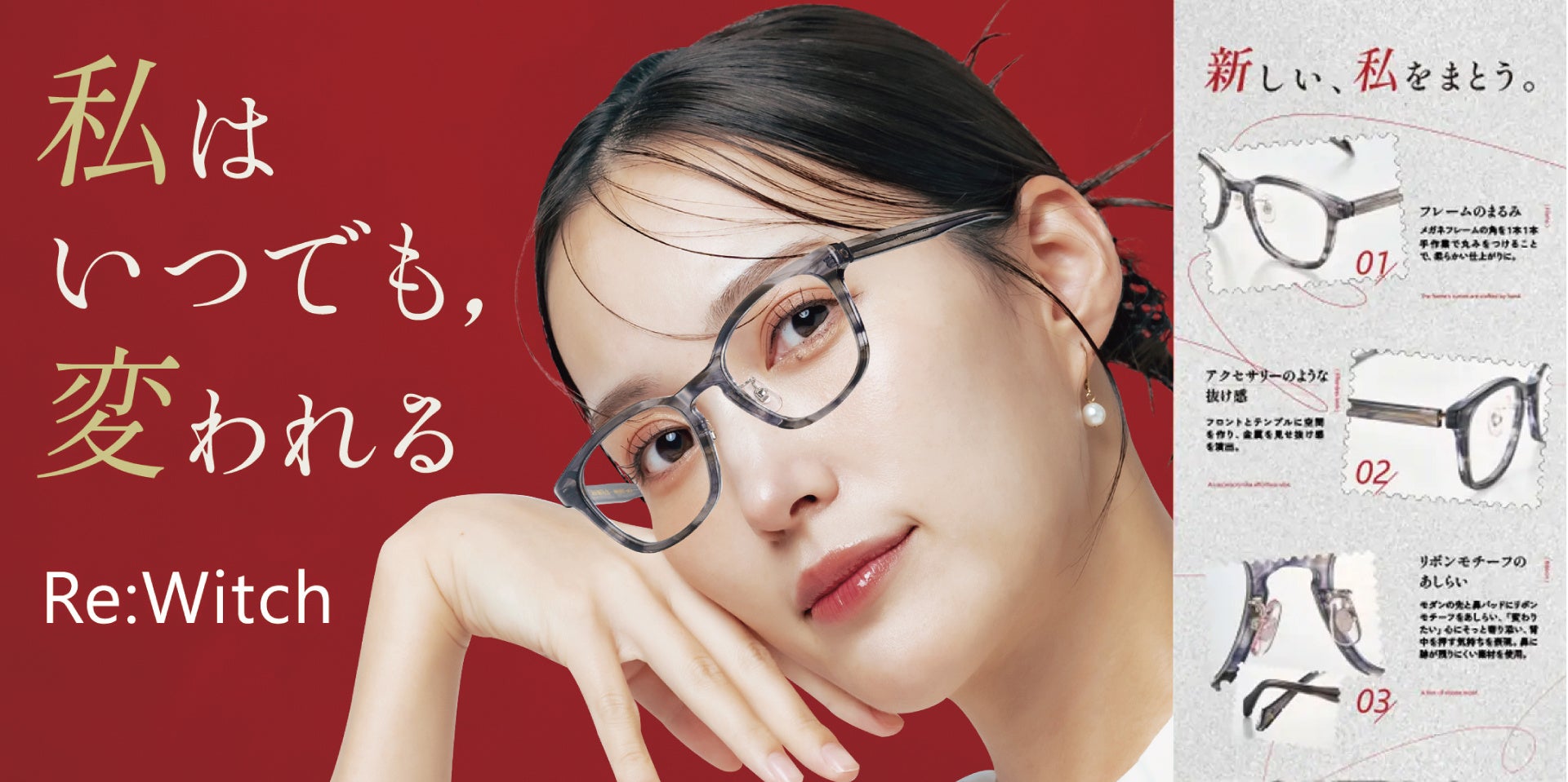 新しい街への引っ越しや憧れの仕事への挑戦、大切な人との出会い、または今の自分を少し変えてみたくなったときに。Re:Witchは、メガネのレンズ越しに映る世界が少し違って見えるように、新しい自分をスタートさせるための「きっかけ」を届けます。