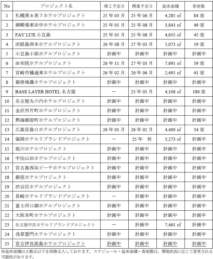 当社は、観光立国の実現や地域創生への貢献を目的にホテルの開発に取り組んでおり、多人数向けホテルブランド(『fav』『FAV LUX』『seven x seven』)を全国で展開しております。このたび、特別目的会社への出資を通じて当社グループのホテルブランドの開発用地を新たに販売用不動産として取得いたしました。