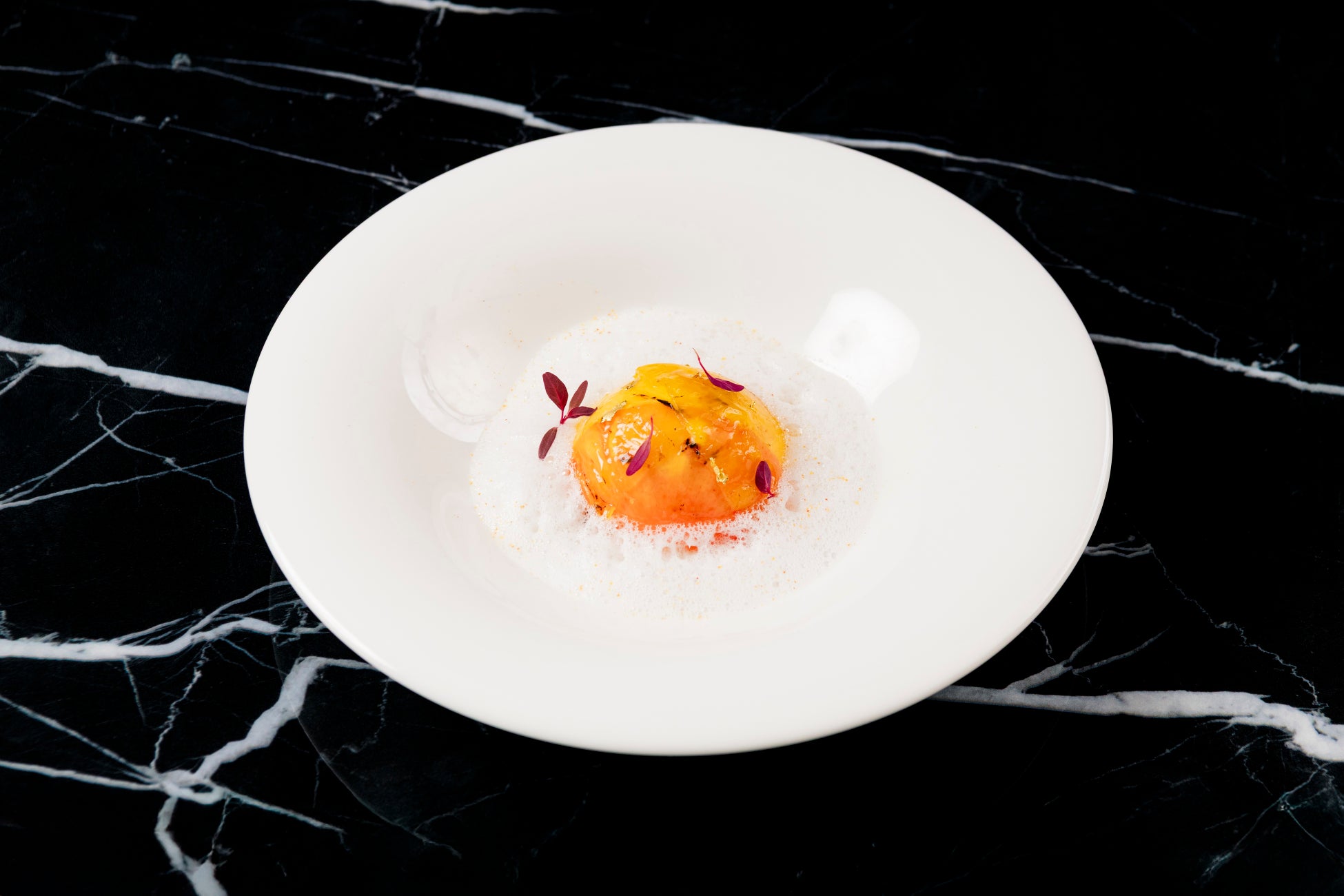 香ばしくローストしたオマール海老を、赤ワインと香味野菜で仕上げたクラシックなソースシヴェで濃厚に引き立て、オーマル海老の卵巣であるコライユを加えることで、濃厚な海の旨みとまろやかなコクが際立ちます。さらに、完熟フルーツトマトの酸味と自然な甘みが加わることで、フレッシュな味わいに仕上げました。