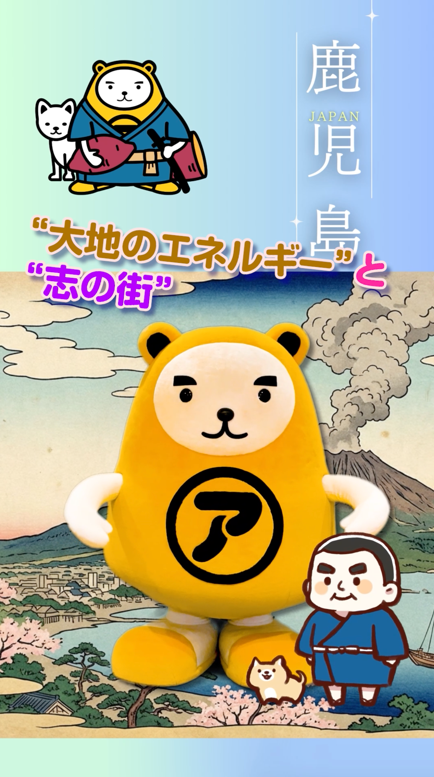 今回の鹿児島編では、桜島の雄大な火山や温泉、溶岩でできた大地を背景に、黒豚などの豊かな食文化とともに、鹿児島ならではの自然の力を体感。べあ~君が元気いっぱいにダンスを披露します。