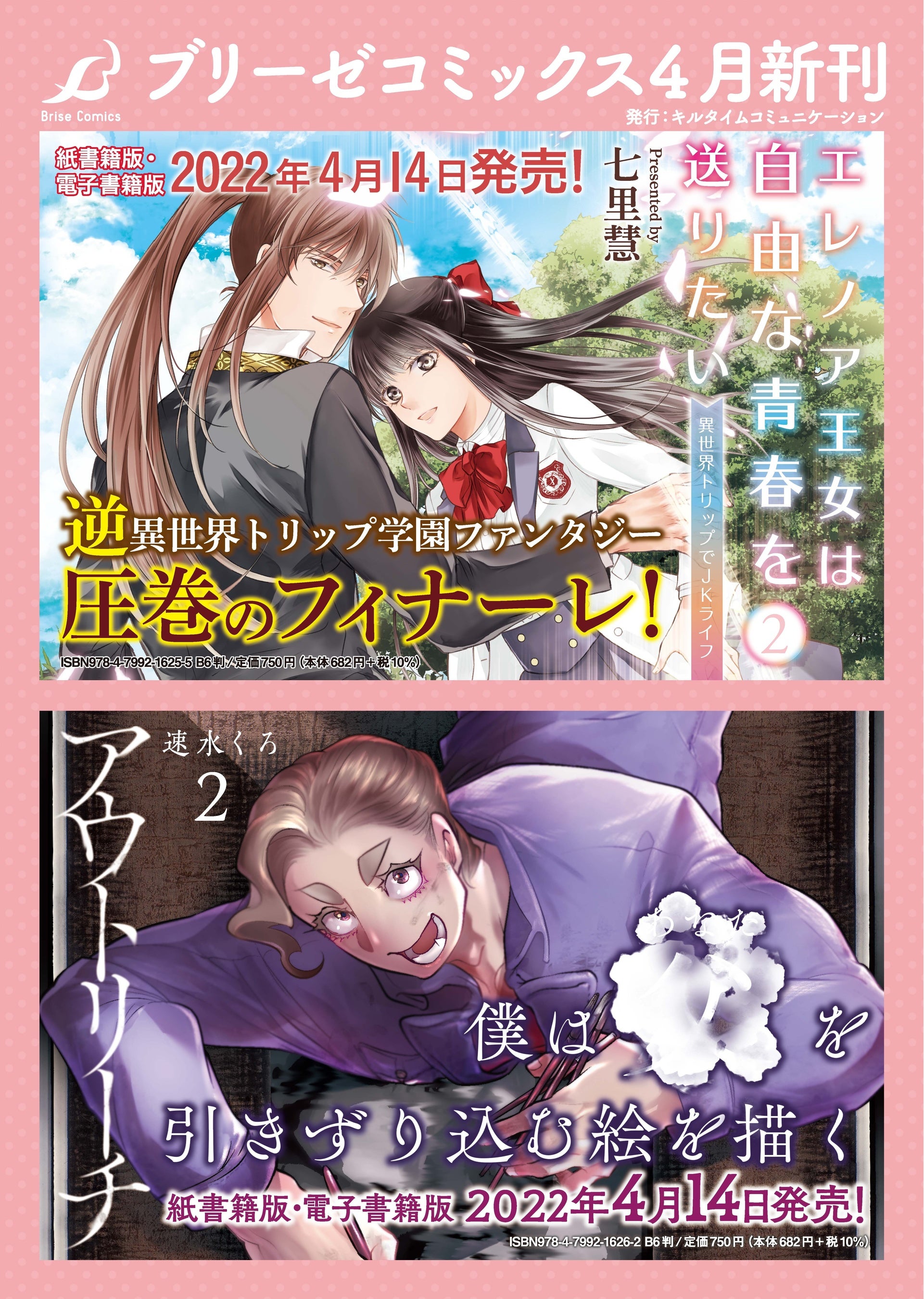 キルタイムコミュニケーション(東京都中央区)は、ブリーゼコミックス『エレノア王女は自由な青春を送りたい~異世界トリップでJKライフ~2』を4月14日に発売いたします。