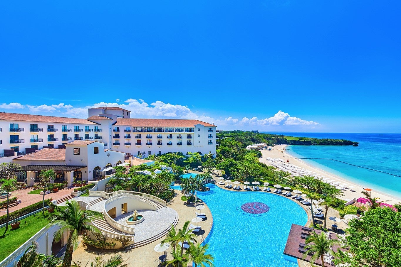 ホテル日航アリビラは、異国情緒漂うスパニッシュコロニアル調の建物が特徴的なオンザビーチのリゾートホテルです。ホテルの目の前は「アリビラブルー」と称される沖縄本島屈指の透明度を誇る海が広がります。