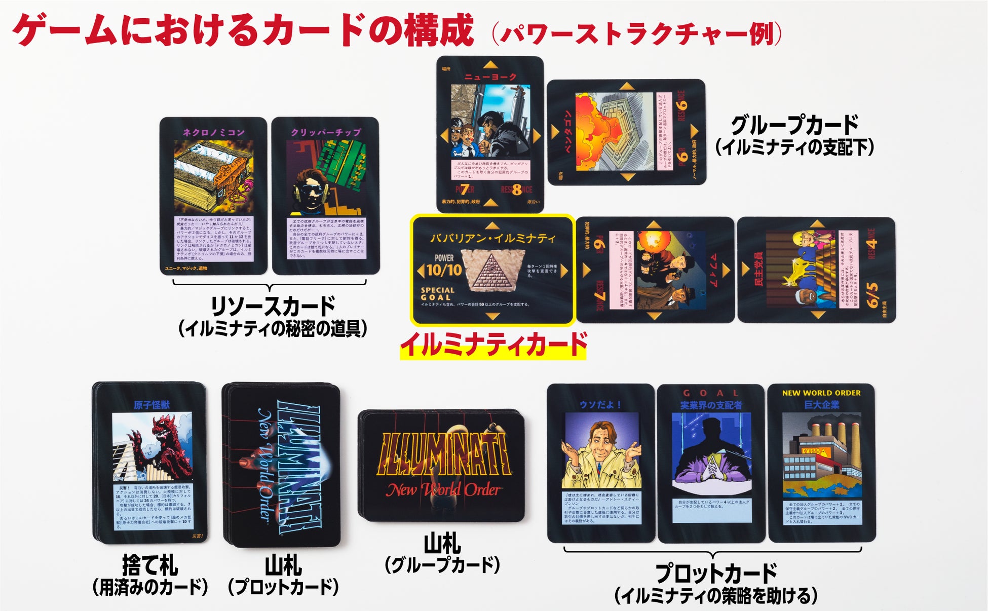 ※この商品は1995年米国STEVE JACKSON GAMES社より発売された『ILLUMINATI New World Order -FACTORY SET-』の日本語版です。ILLUMINATI New World Orderの増補セットである『ASSASSINS』のカードは含まれません。