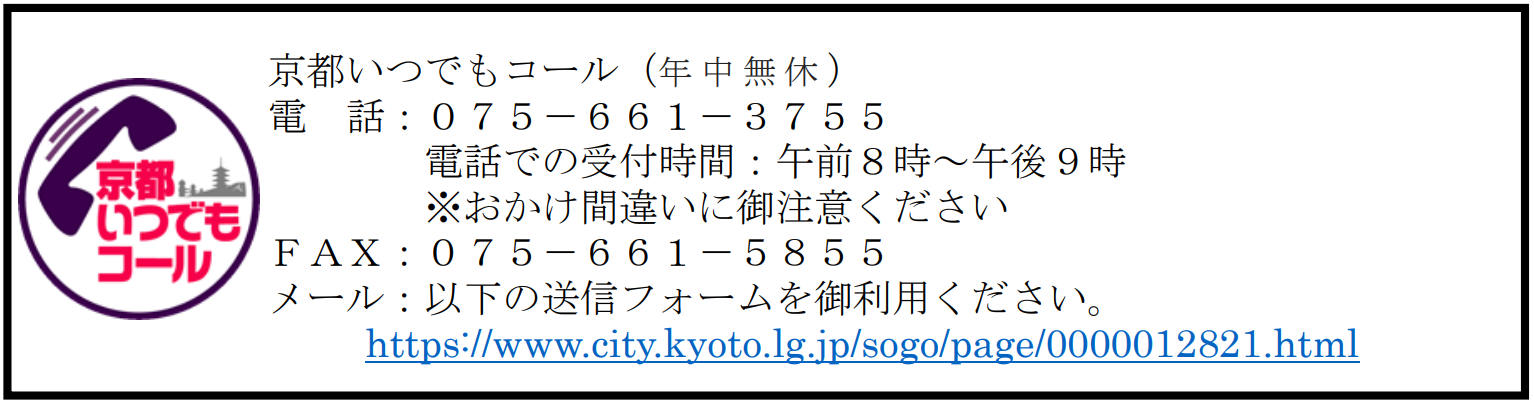 ⑤ 申込方法 京都いつでもコールに電話、FAX、メールのいずれかで申込