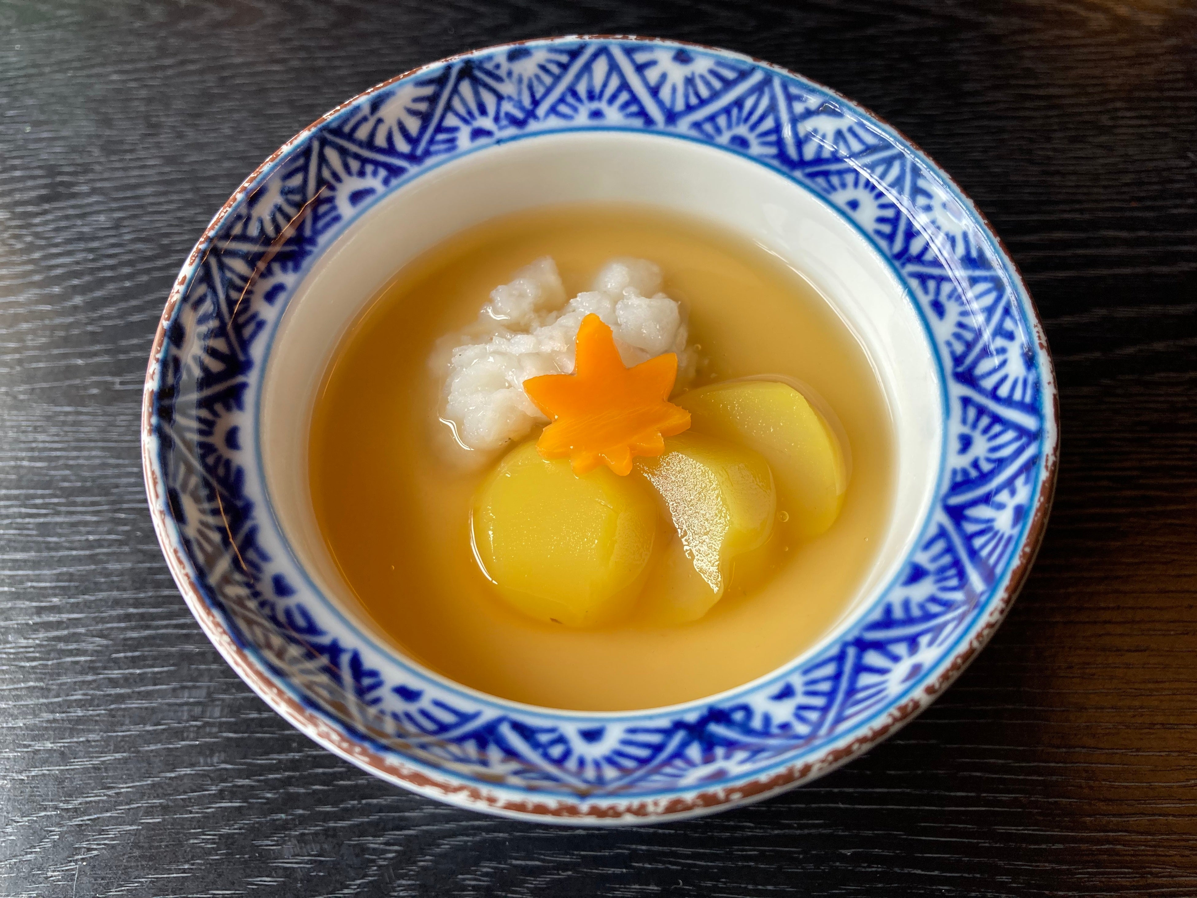 萩豆腐と鱧の吸物 鮑と勝栗の茶碗蒸し(初)