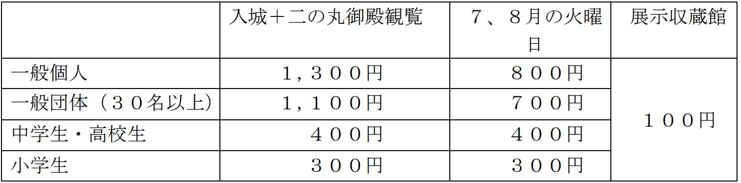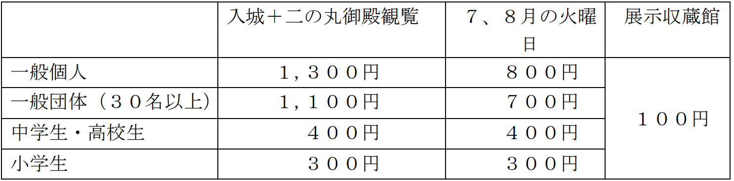 ※ 二の丸御殿の受付は、午前8時45分~午後4時10分まで