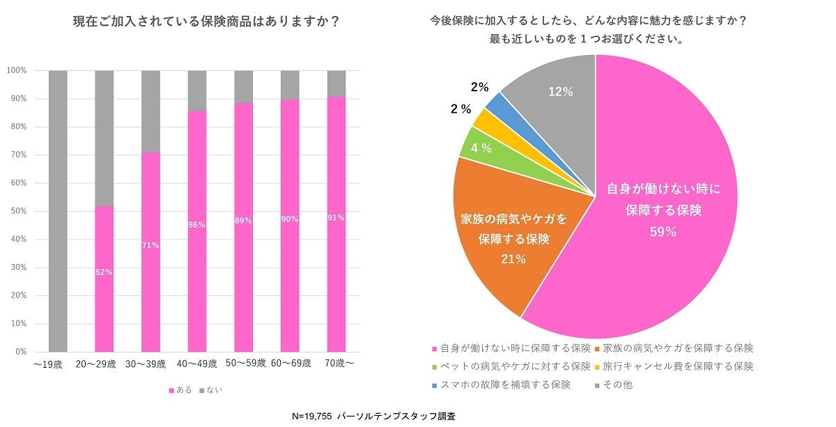 当社では2024年2月14日~2024年2月29日に派遣スタッフ等に保険商品に関するアンケート調査を実施、19,755人から回答を得ました。