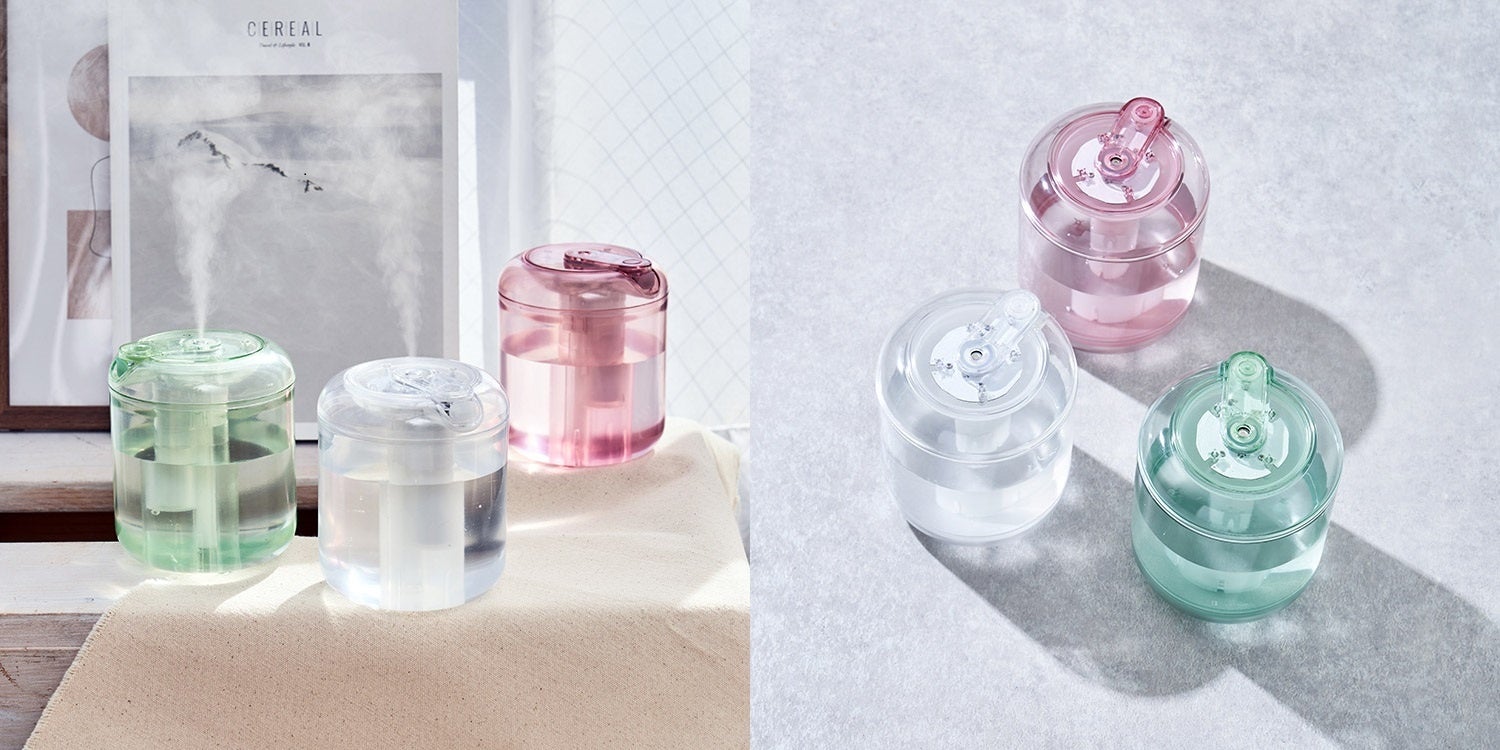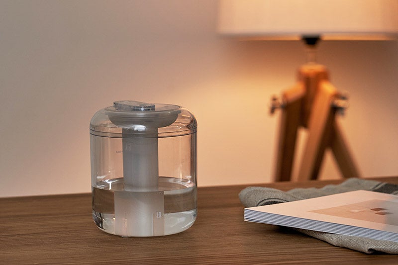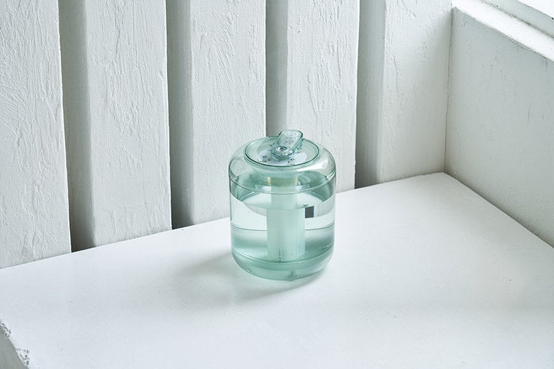 丸みのあるクリアボディと、7色に光るLEDがポップでかわいい加湿器