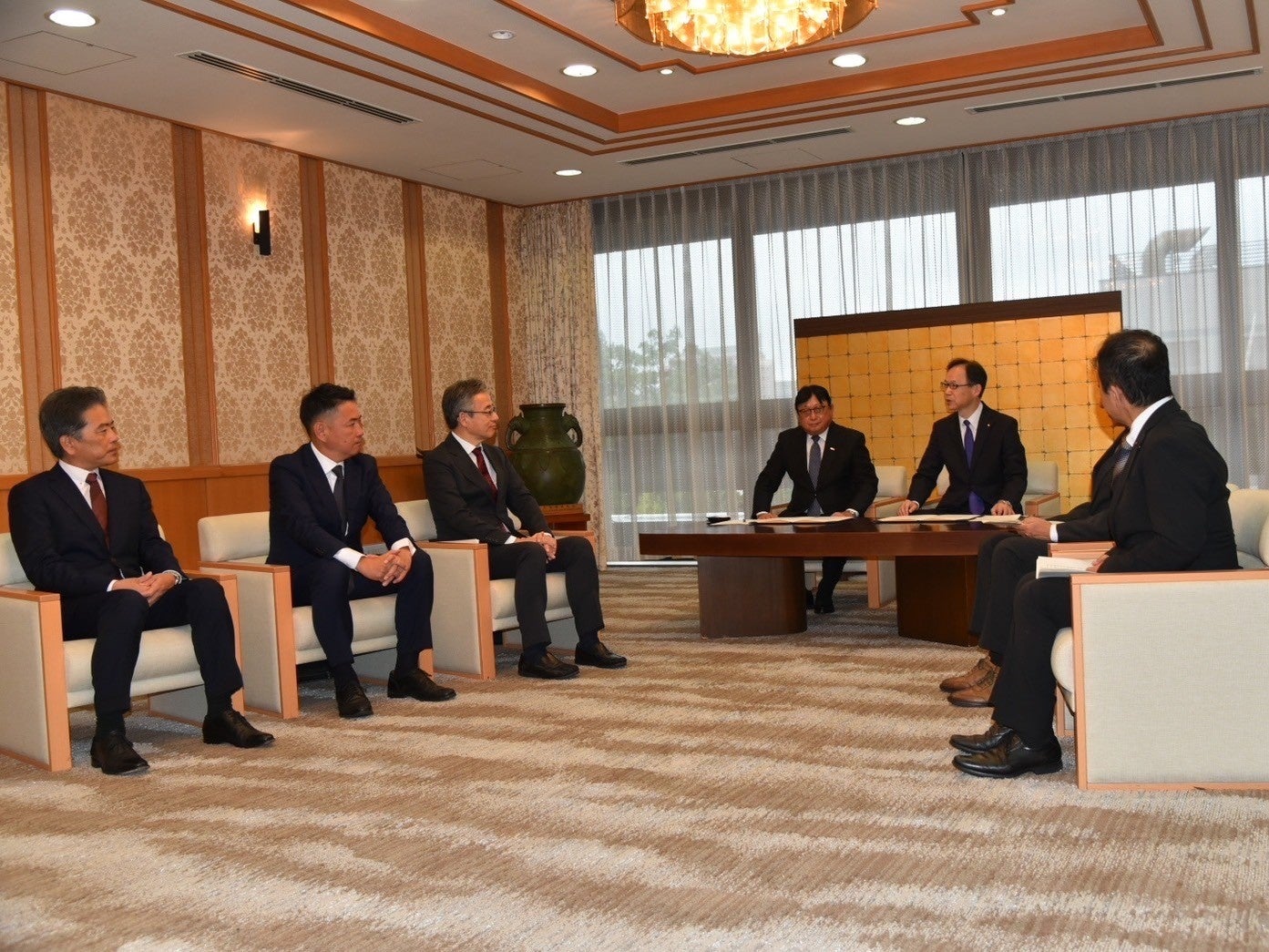 【大分県との連携協定締結式にてあいさつをする双日の代表取締役 会長 CEO藤本昌義 (左から4人目)】