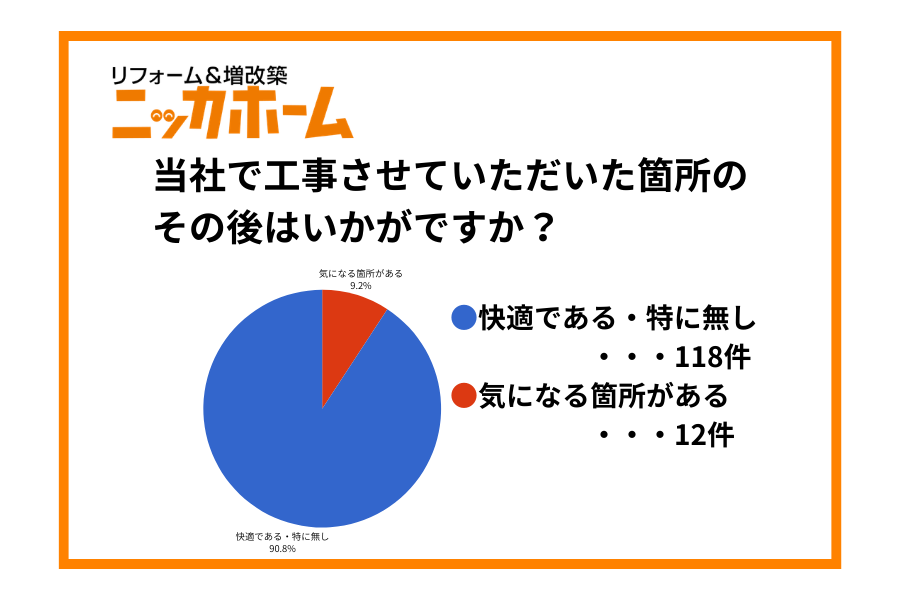ニッカホームOBの9割がリフォーム後を”快適に過ごせている”と回答、さらに7割が”次のリフォーム”を検討中