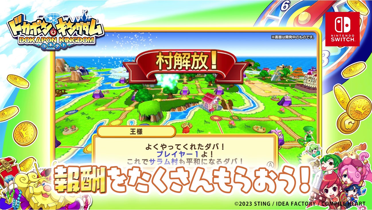 アイディアファクトリー株式会社の子会社である株式会社コンパイルハートは、2023年4月13日発売予定のドカポンシリーズ最新作「ドカポンキングダム コネクト」(企画・開発:株式会社スティング)のオンライン対戦システム詳細や店舗別購入特典を公開しました。