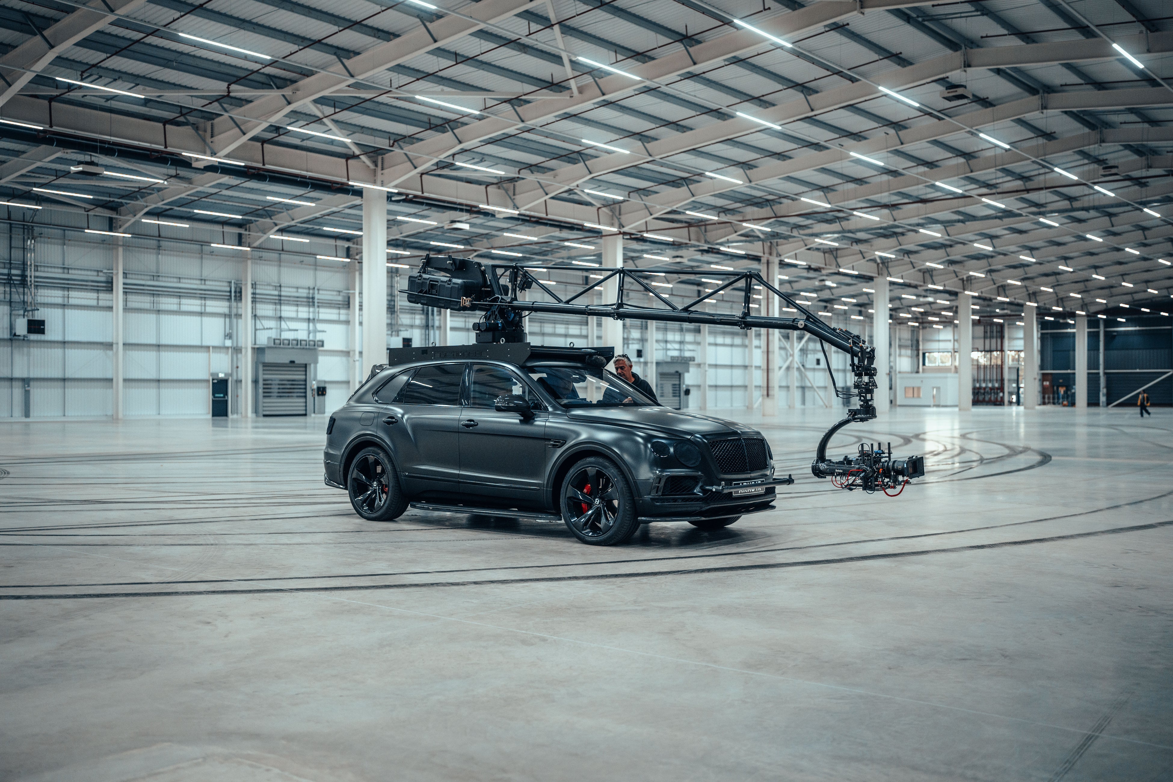 実際の撮影には、制作チームに加え、ベントレー社内の各部門からのサポートチームも参加し、総勢100名を超えるスタッフがこのプロジェクトを支えました。主要な撮影クルーはおよそ25名で構成され、メインカメラオペレーター2名、ドローンオペレーター2名、ミニカム技術者2名に加え、初代ベンテイガ W12をベースに製作された専用トラッキングカーを運用する3名のクルーが含まれていました。このトラッキングカーには、U-Craneアームが装備されていました。