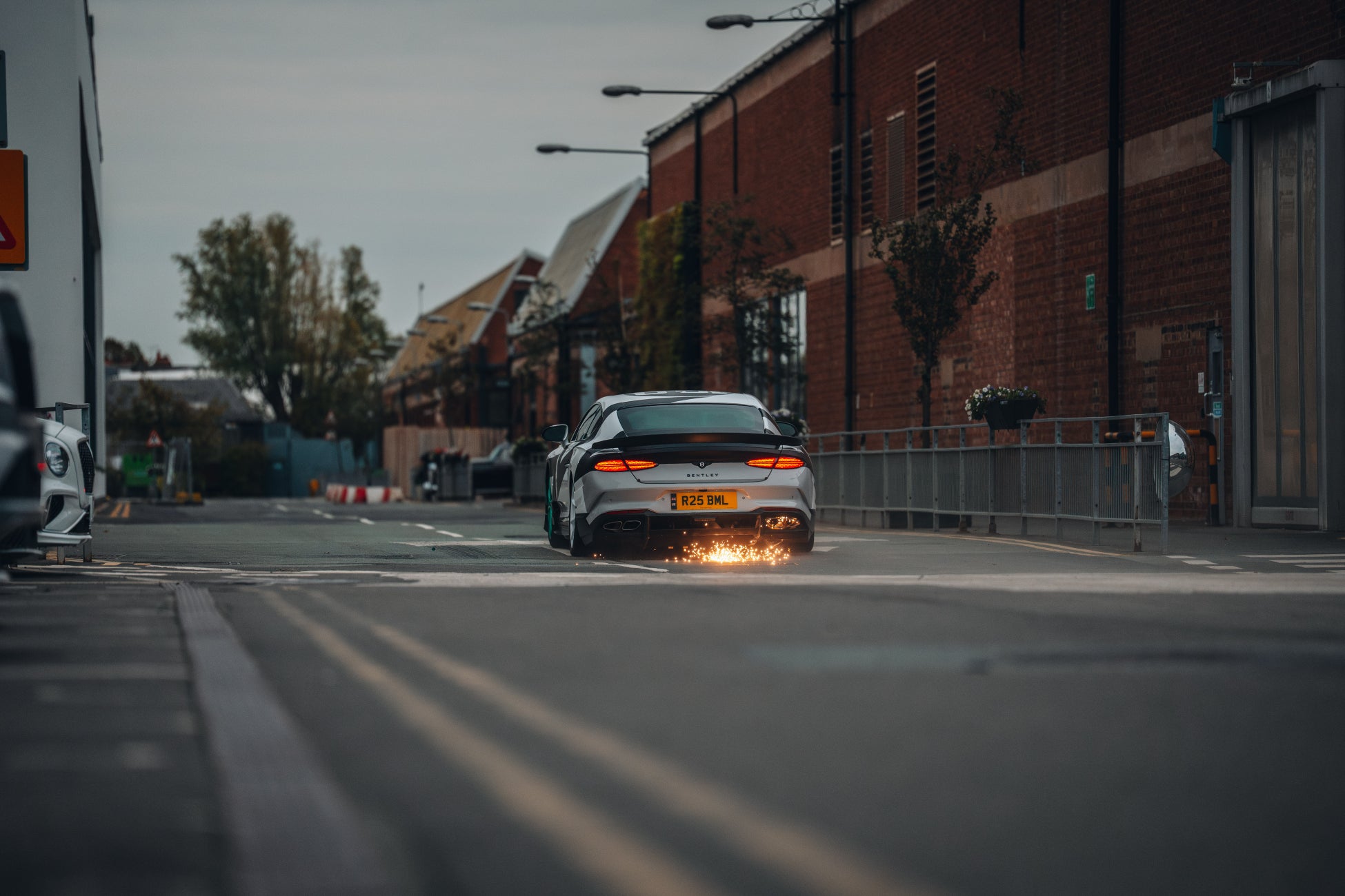 電子制御式リミテッド・スリップ・ディファレンシャル(eLSD)は、より早い段階でロックがかかるよう調整され、エレクトロニック・スタビリティ・コントロール(ESC)は恒久的に無効化されました。さらに、静止状態および走行中のバーンアウトを可能にするための専用ソフトウェア変更も施されました。成功の鍵となったのは、8速デュアルクラッチ・ギアボックスの制御システムと統合された、機能する油圧式ハンドブレーキの設計および搭載でした。これにより、工場内の道路網にあるタイトコーナーへ、パワーオーバーステアに頼るのではなく、車両をスライドさせた状態でコーナーへ進入させることが可能になりました。この車両の準備作業は、ベントレーのエンジニアリング・マネージャーであるアリステア・コーナーが監修しました。
