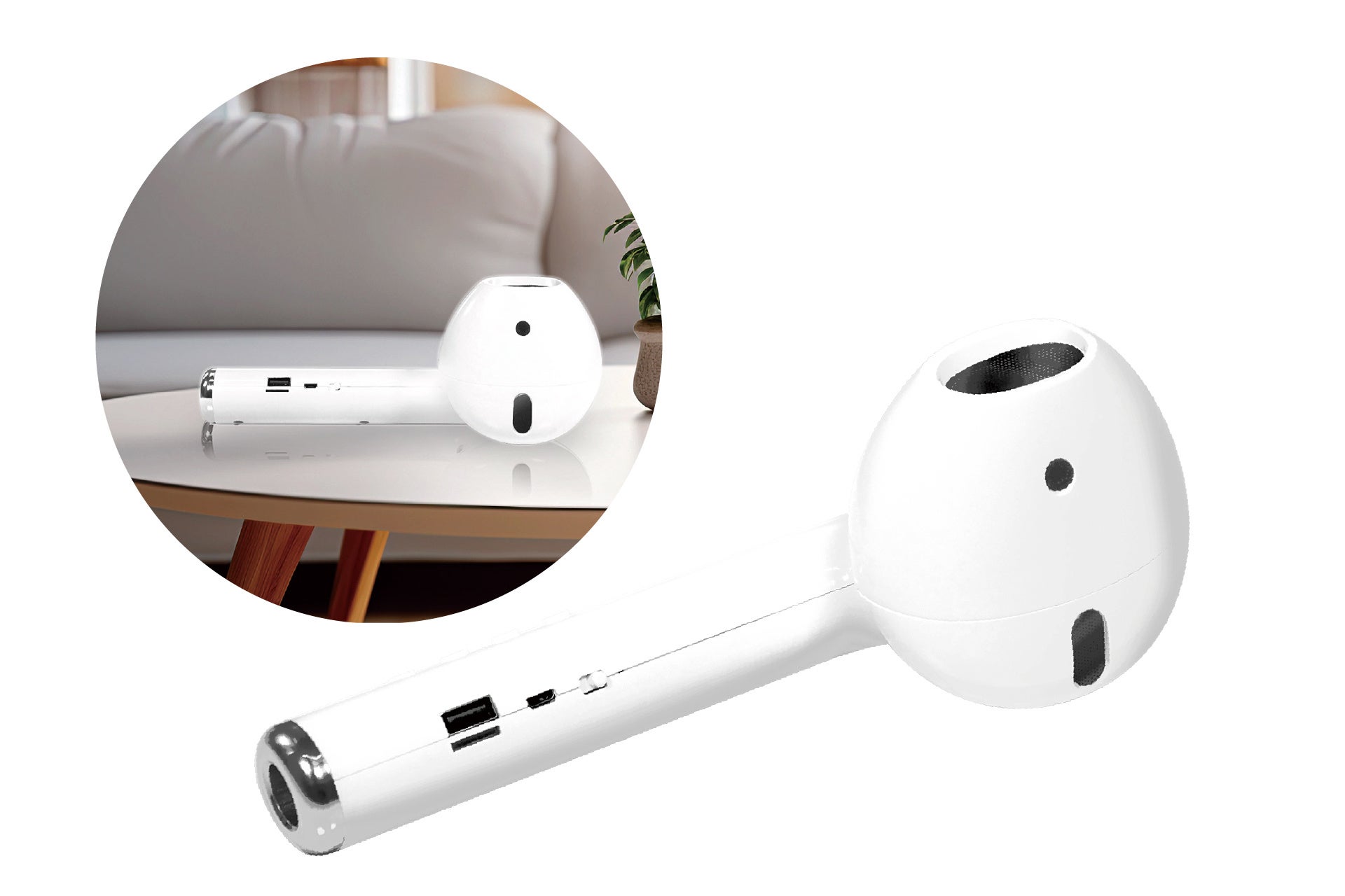 特徴:ワイレスイヤフォンがスピーカーに!?全長約23cm!インパクト抜群のスピーカーが登場♪今流行りのワイヤレスイヤフォンが、ワイヤレススピーカーになりました!プレゼントにもおすすめです。