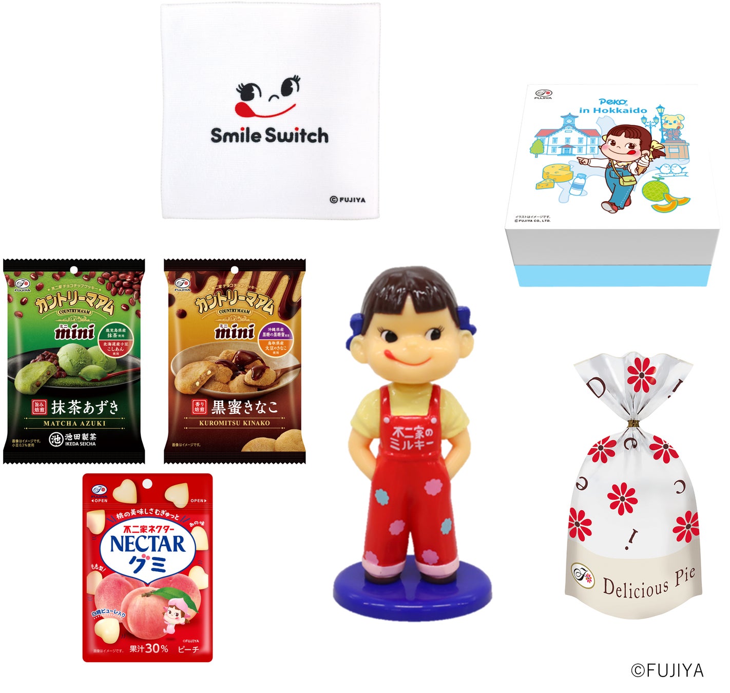 「ミニレトロペコちゃん人形(ミルキーフラワー×レッド)」、西洋菓子舗 不二家 丸井今井札幌本店限定の「北海道×ペコちゃん プレミアムミルキーバターサンド(5個入)」のほか、ペコちゃんグッズを詰め合わせたお得なお楽しみ袋が数量限定で登場します。