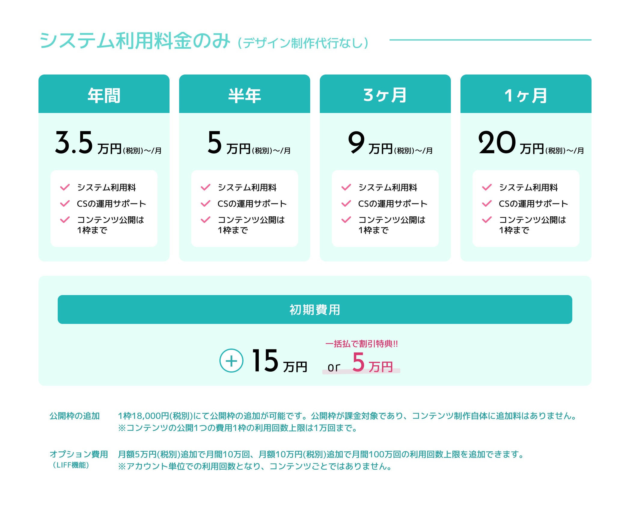 含まれるもの:システム利用料/CSの運用サポート/公開枠は1枠まで
