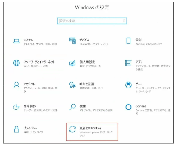 Step1:「設定」から「更新とセキュリティ」を選択します。