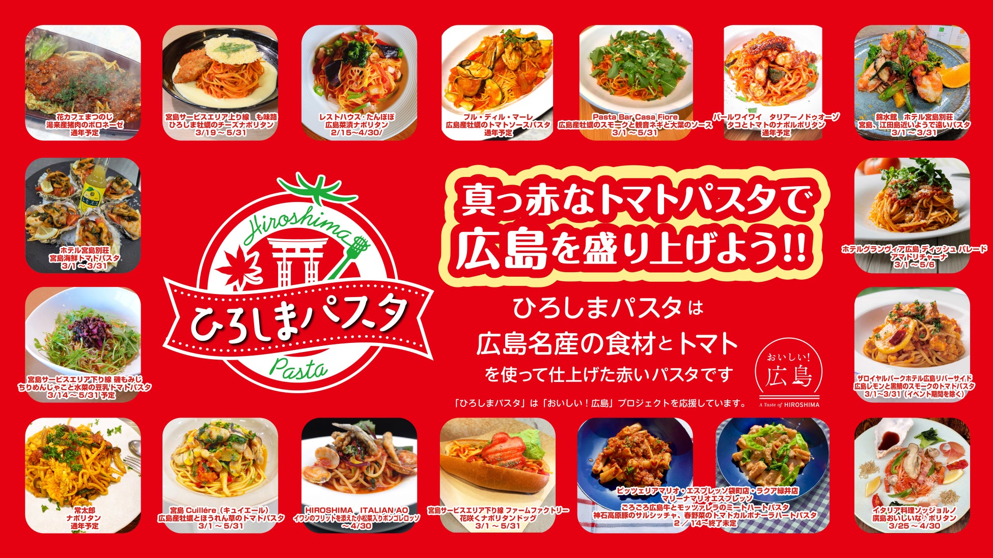 「ひろしまパスタ」は、広島名産食材と、トマト商品を掛け合わせた“赤いパスタ”です。この「ひろしまパスタ」のメニューを広島県の外食店やホテルなどへご提案し、提供飲食店を増やしていくとともに、店舗を盛り上げる販促ツールの支援やSNSを活用した情報発信施策を行っております。また、ご家庭でも「ひろしまパスタ」をお楽しみいただけるよう、スーパー店頭などでPOPやレシピなども展開し、「ひろしまパスタ」を発信しております。