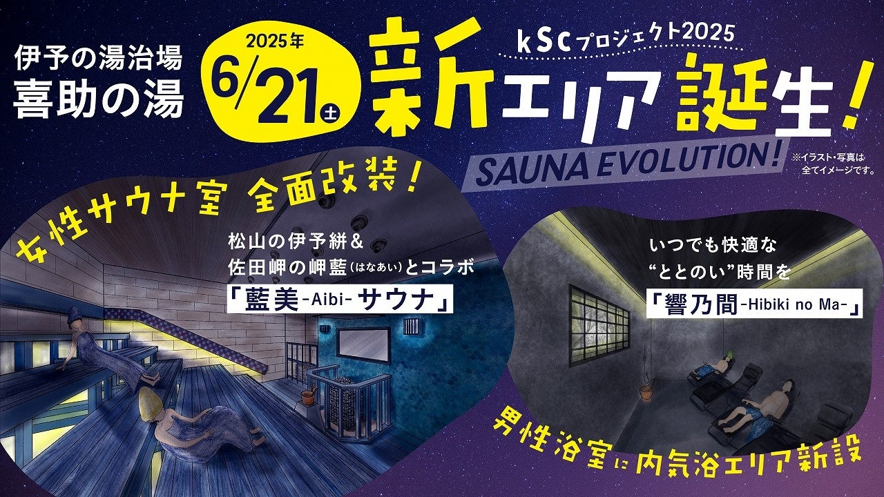 『四国サウナの聖地』として全国のサウナーから支持を集め、ニフティ温泉「サウナ人気ランキング」において2年連続全国1位を受賞した「伊予の湯治場 喜助の湯」(愛媛県松山市)。