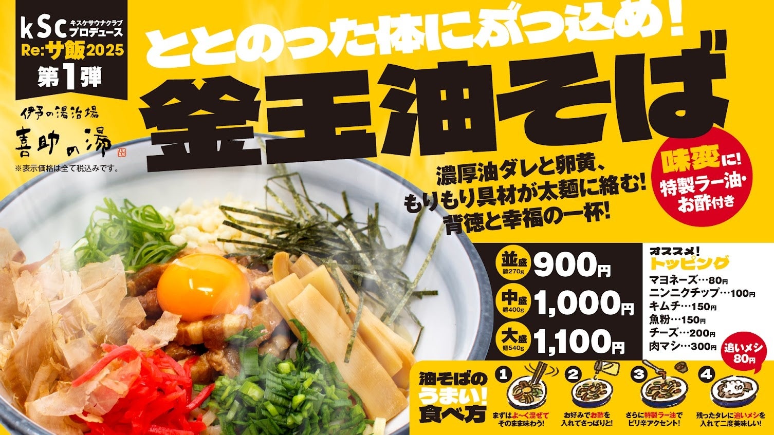 【サウナ×油そば=究極】Re:サ飯2025 第1弾『釜玉 油そば』が、伊予の湯治場 喜助の湯で味わえる!5月1日発売開始【愛媛・松山】