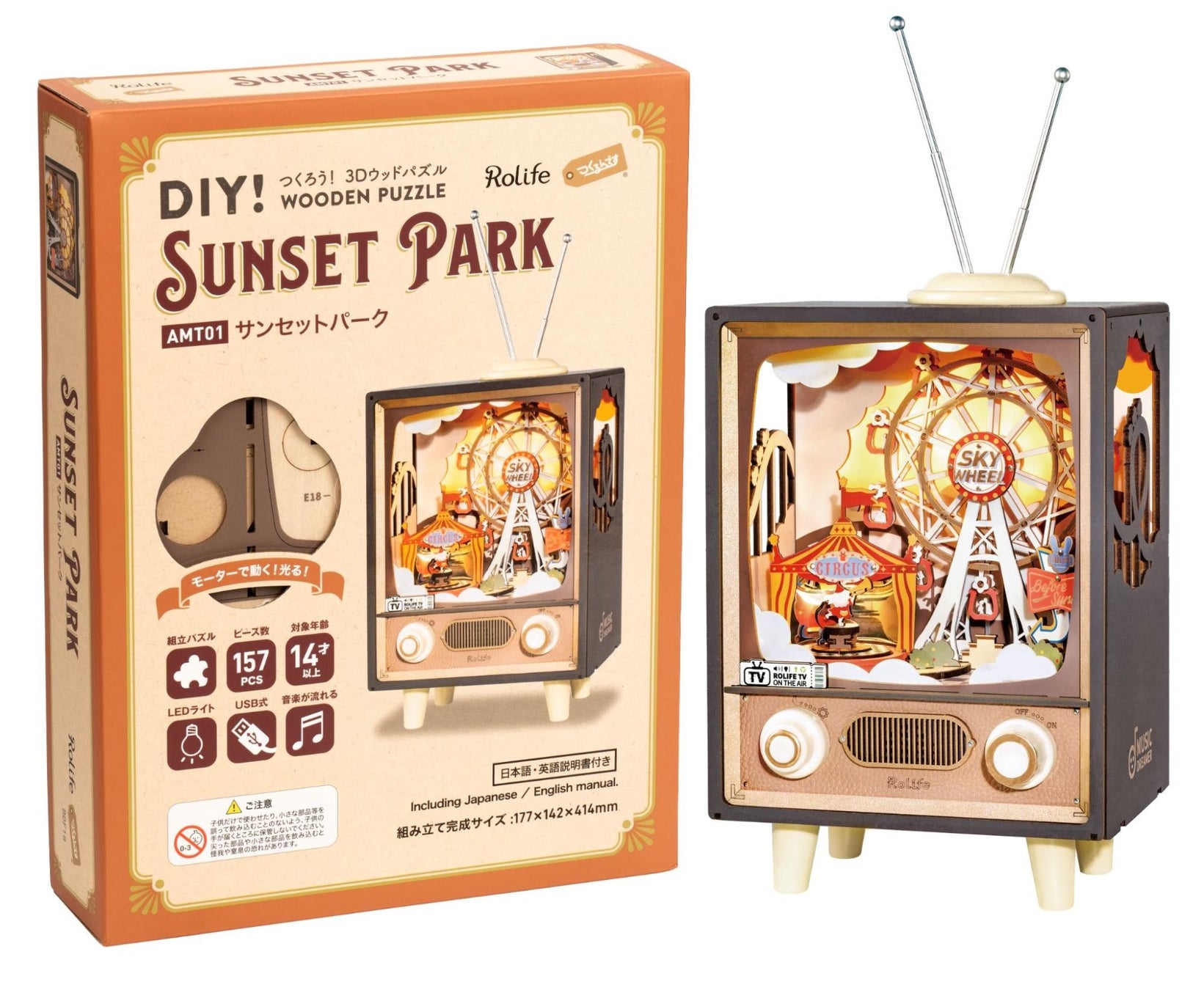 レトロなテレビ型ウッドパズル!DIYキット「つくるんです®」より3Dウッドパズル『サンセットパーク』新登場