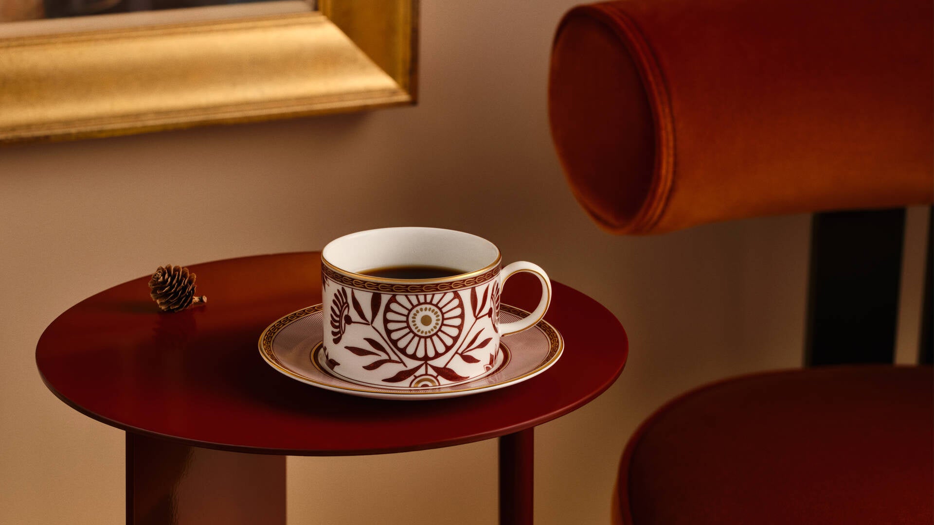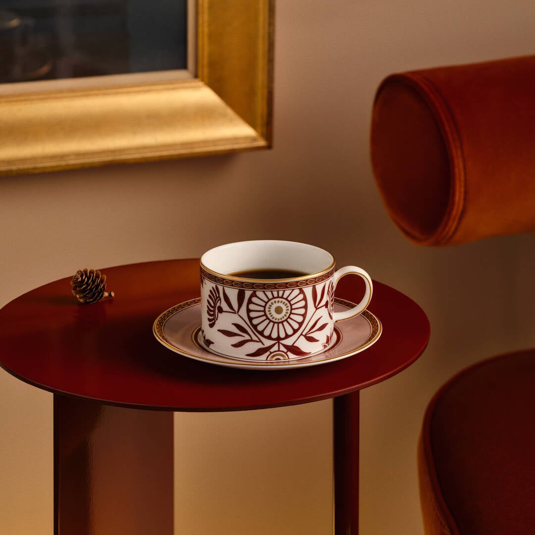 レッドスプレンダーは、ウェッジウッドのアーカイブにある”Mistletoe (ヤドリギ)”のデザインをモダンに解釈し、遊び心のあるストライプ 模様を加えて誕生しました。深みのある赤に金彩を加えて描かれた ヤドリギと野花の絵柄から自然の美しさ温かさが感じられるテーブル ウェアです。 ルネッサンス レッドやジオ ゴールドなど、ウェッジウッドの他のテーブル ウェアとも相性良く組み合わせてお楽しみいただくことができます。