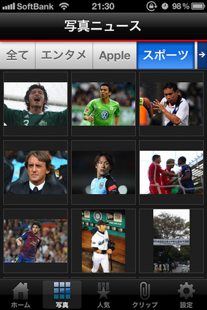 (見出し一覧/写真一覧/人気ランキング/クリップ) 。