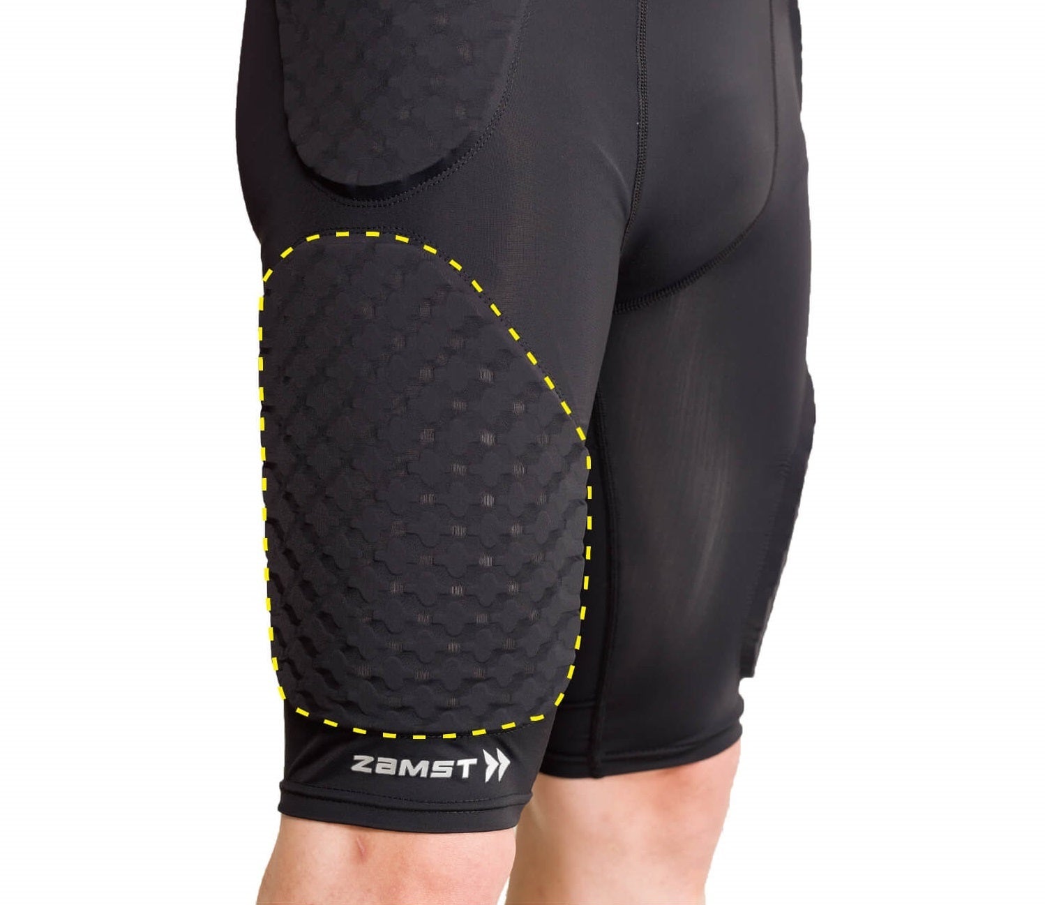 太ももを広範囲にカバーする独特のパッド形状や、腰回り・尾骨への衝撃に対応するパッドのレイアウトなど、本製品はザムスト契約アスリートである富樫勇樹選手の要望を基に開発しました。