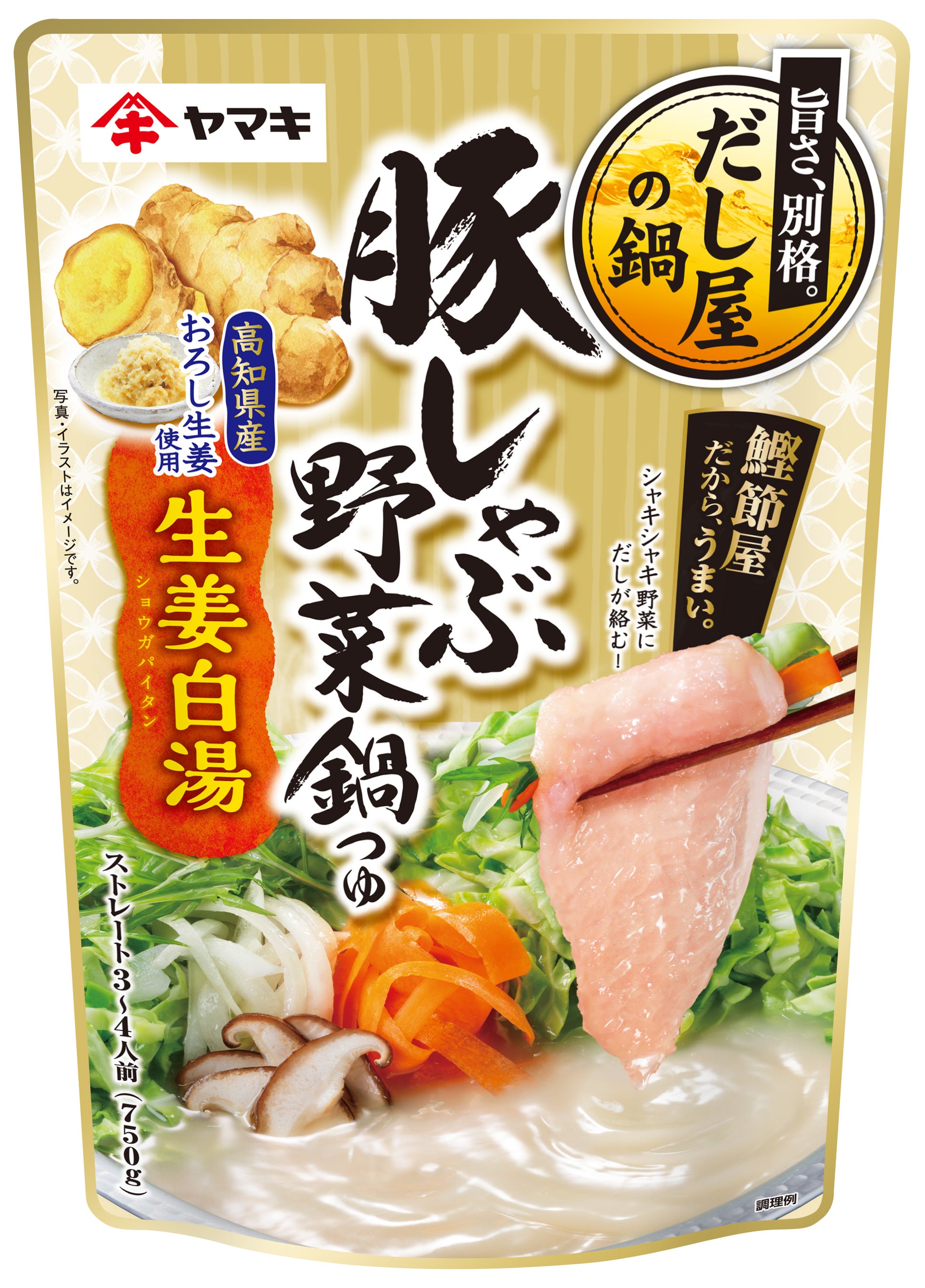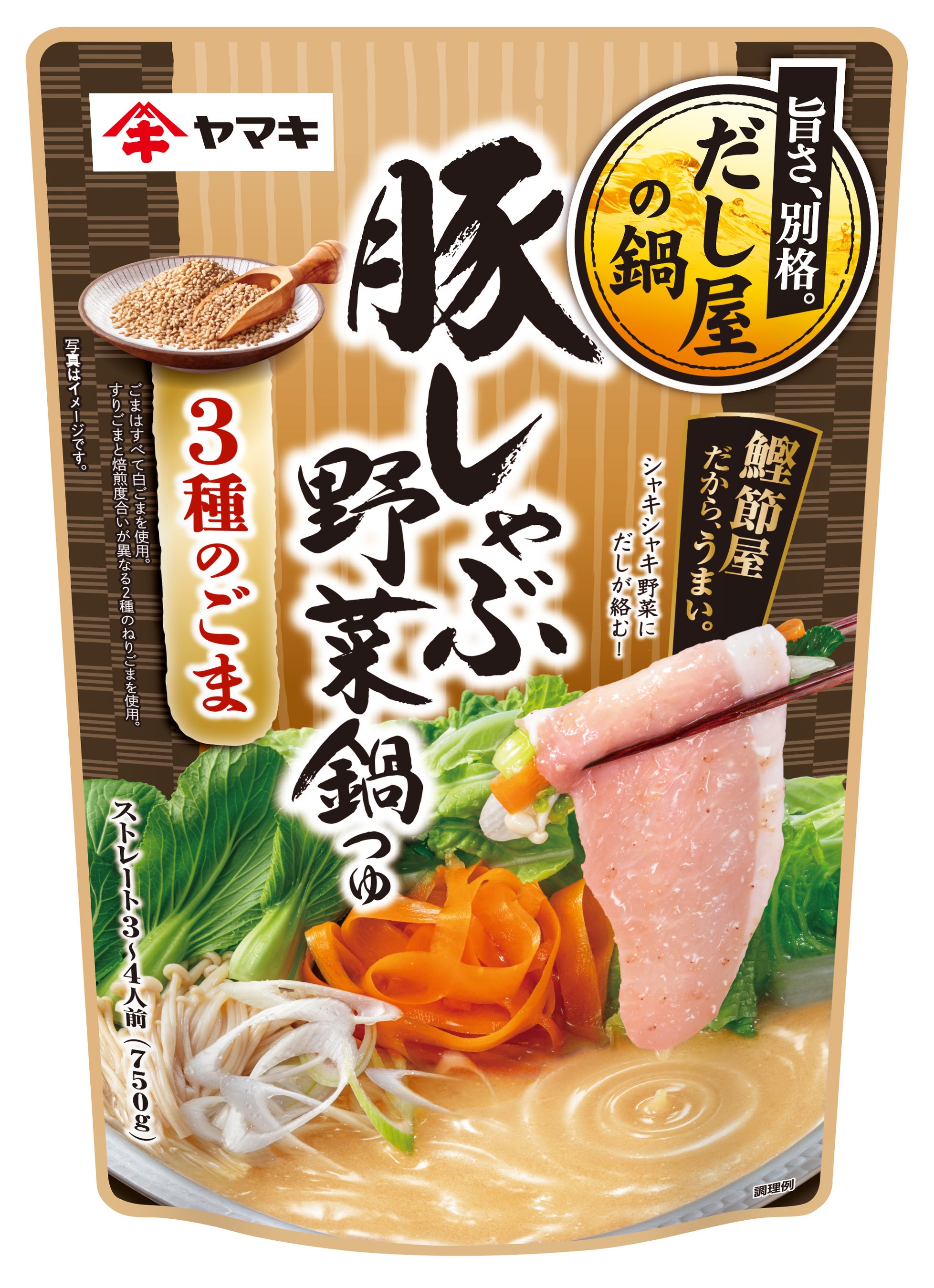 「旨さ、別格。だし屋の鍋」シリーズは、「鰹節屋・だし屋、ヤマキ。」だからこそ作れる、だしにこだわり、だしのうま味を活かした鍋つゆです。その中でも「豚しゃぶ野菜鍋つゆ」は、豚肉と野菜をおいしく手軽に食べることができるシリーズで、現在4商品を展開し発売以来人気を誇っています。