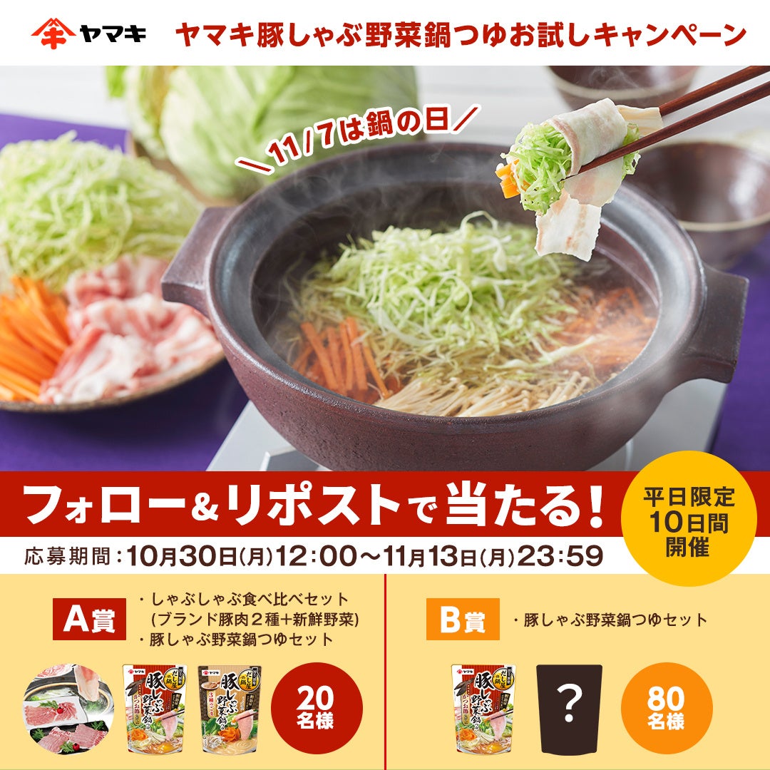 11月7日「鍋の日」に向けて「ヤマキ豚しゃぶ野菜鍋つゆお試しキャンペーン」を実施