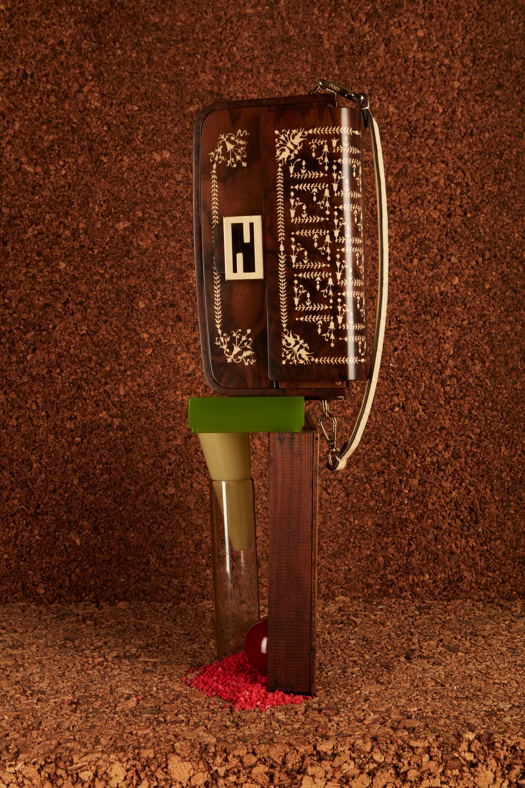 このプロジェクトは、職人作りに刻まれてきた古くからの知識、技能や先見の明の守護者であるイタリアの匠たちを称えるために、2020年に発足されました。本書は、メゾンのアクセサリーおよびメンズウェア部門のアーティスティック ディレクター シルヴィア・フェンディ(Silvia Venturini Fendi)が、イタリアの12の地域から呼び集めた30人の職人たちの希少稀な作品をまとめたものです。彼らはベジタブルレザー、珊瑚、フィリグリー、ゴールドのチゼル大理石、さらに木から、レース、クロシェ、エニシダ繊維ブロケード、テッセラによるモザイク、織布、クジャクの羽などを縫い込む刺繍まで、数世紀もの歴史を持つ独特な技法や素材を使い、1997年にデザインされた伝説的アイコンバッグ「バゲット(Baguette)」を希少なアート作品へと昇華させました。