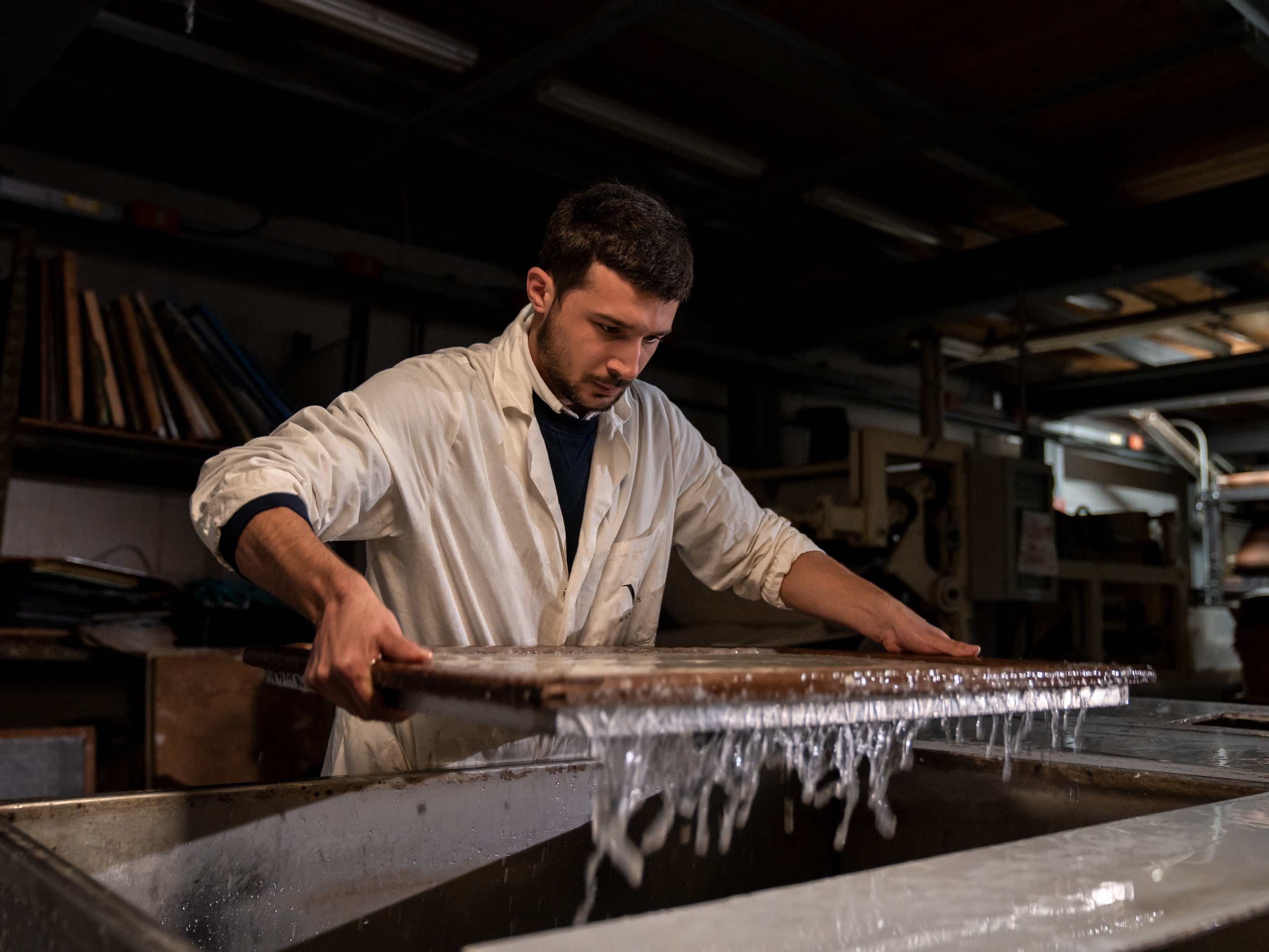 タイポグラフィ版の出版に先駆け、ハンドメイドで作られた限定版が25部作られました。本書にはイタリア産ヘンプ繊維の紙が使われています。ヘンプ繊維はトスカーナ州から供給され、ウンブリア州で加工されます。現在、ヘンプは織物用と製紙用ともに、イタリア国内で供給可能な原材料です。1エーカーのヘンプは、1エーカーの森林よりも多くのCO2(二酸化炭素)を吸収します。また、灌漑用水の必要量も少なくてすみ、土壌の重金属汚染土を回復させることができます。殺虫剤は必要なく、ヘンプからフードチェーン向けの種子と油が採れるので、食糧生産と土地を巡る紛争が起こることもありません。繊維は抗細菌性を有しています。生産工程を通して化学添加物が不要なため、自然に分解します。製紙はマニュアリス・カルティエラ(Manualis Cartiera)によって手作業で行われ、100%天然イタリア産ヘンプ紙200gと100%天然コットン紙150gがあります。製紙用ヘンプはイタリア国内でピサ周辺 地域の農家によって栽培され、集荷はカナパフィリエラ(Canapafiliera srl)が、供給はプロトティーポ・ストゥディオ(Prototipo Studio)が行います。