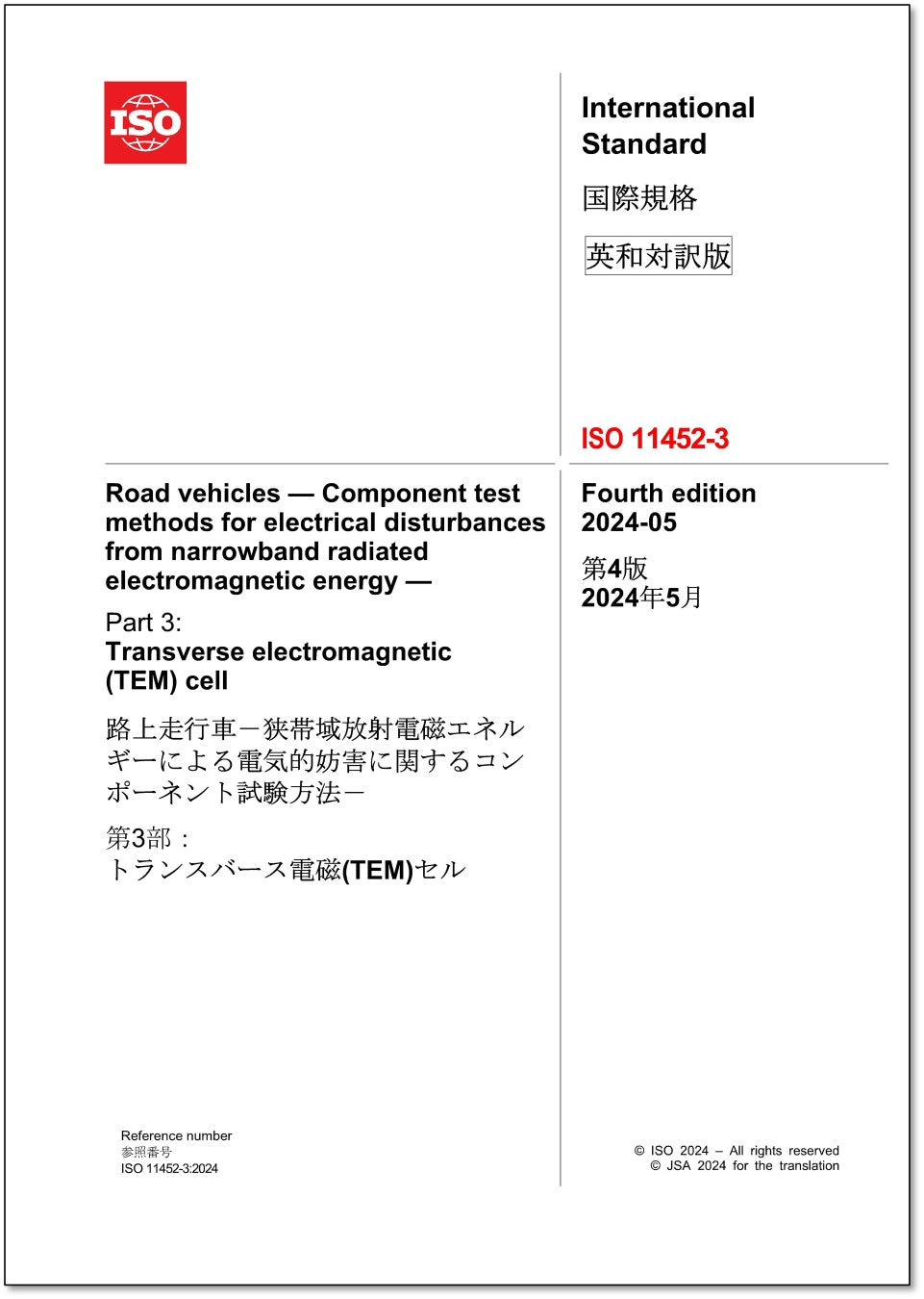 ● ISO 11452-3:2024「路上走行車-狭帯域放射電磁エネルギーによる電気的妨害に関するコンポーネント試験方法-第3部:トランスバース電磁(TEM)セル」