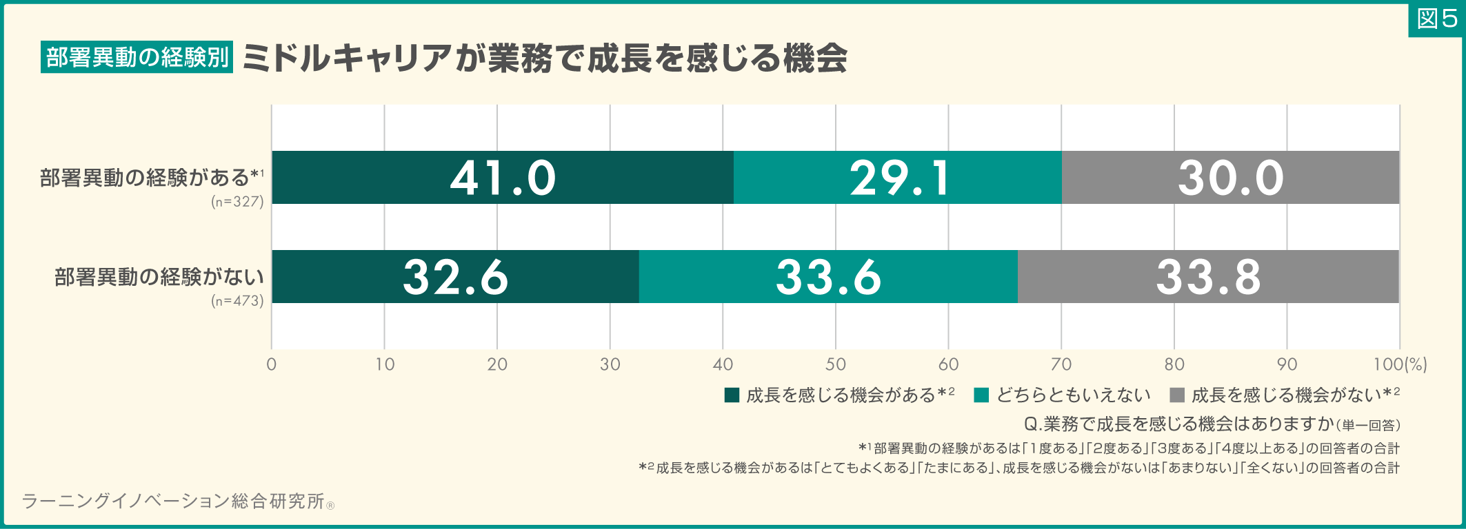 5.部署異動の経験があるミドルキャリア、4割以上が「成長を感じる経験ある」と回答